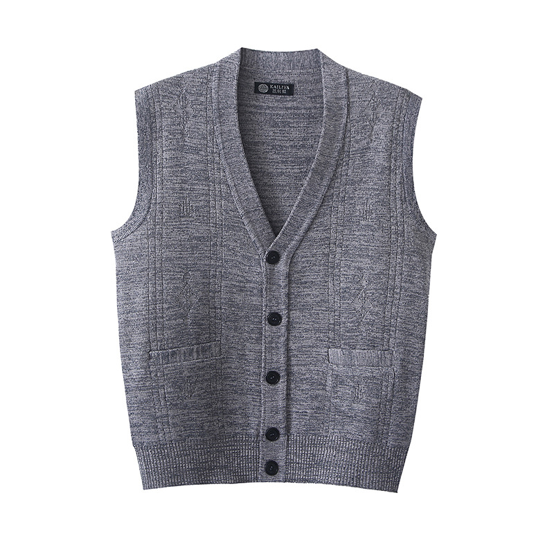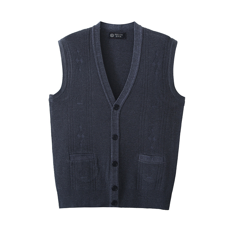 중년 및 노인 남성 아버지의 봄과 가을 자카드 조끼 버튼 카디건 단색 스웨터 조끼스토어 가기