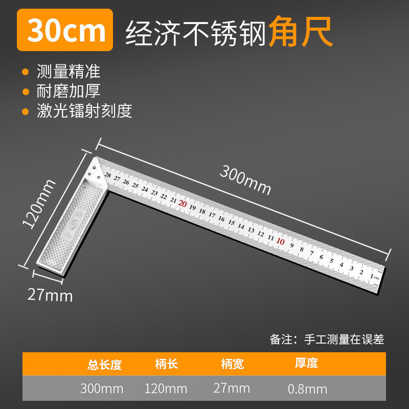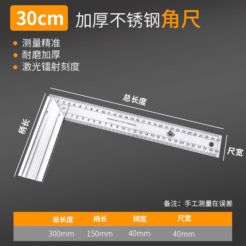 각도 눈금자 스테인레스 스틸 직선 각도 눈금자 고정밀 45 도 삼각형 눈금자 90 도 목공 다기능 활동 눈금자
