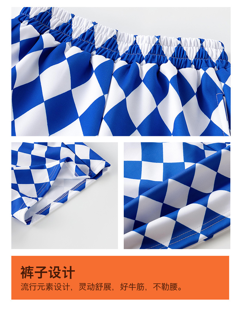 • 8801 흰색 반팔 + 8261 파란색 격자 무늬 반바지 + 중국 머리띠 + 빨간색 줄무늬 흰색 양말
