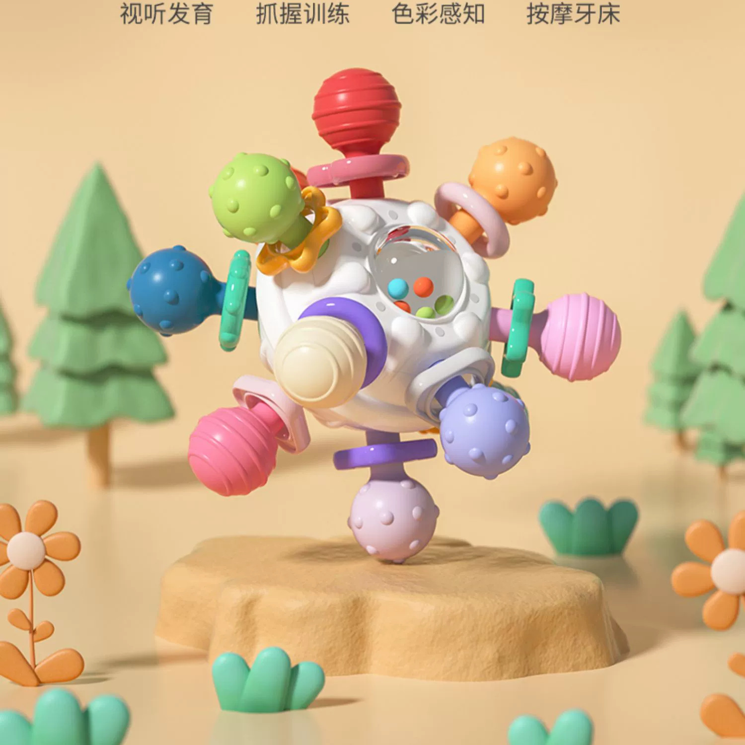 아기 손 딸랑이 장난감 맨해튼 손가락 공 원자 회전 어금니 껌 손 잡기 장난감 부드러운 껌 공스토어 가기