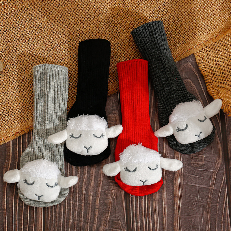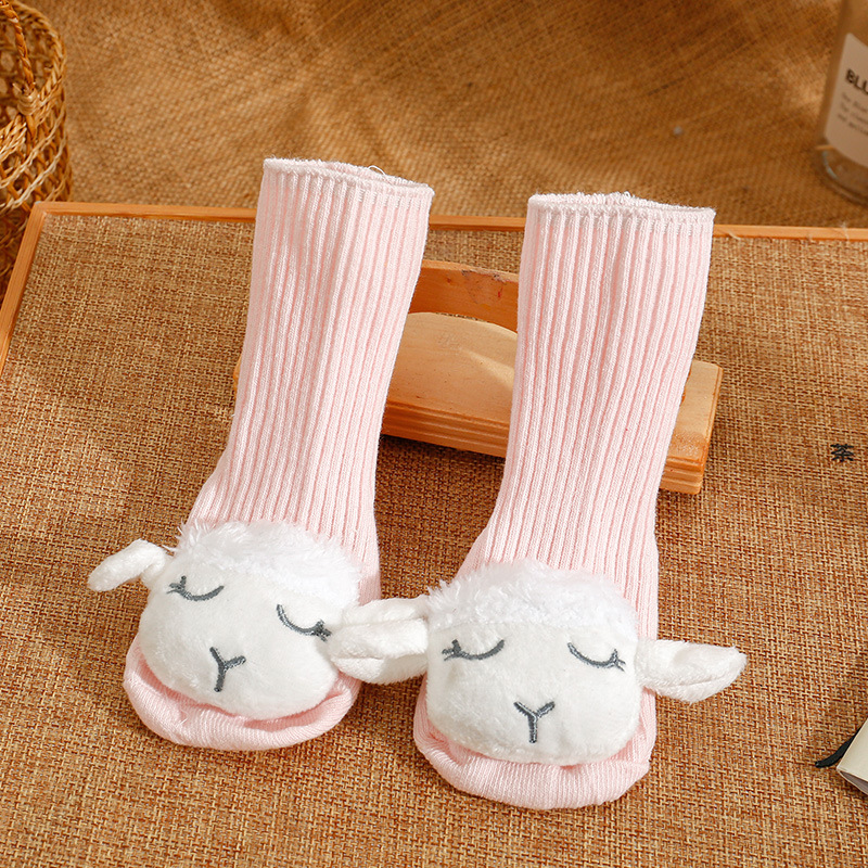 2022 세 아기 미끄럼 방지 바닥 양말 단색 어린이 양말 아기 양말 만화 INS 양 양말