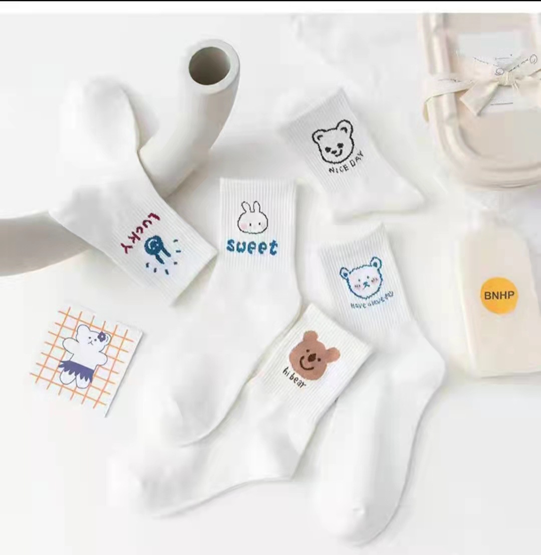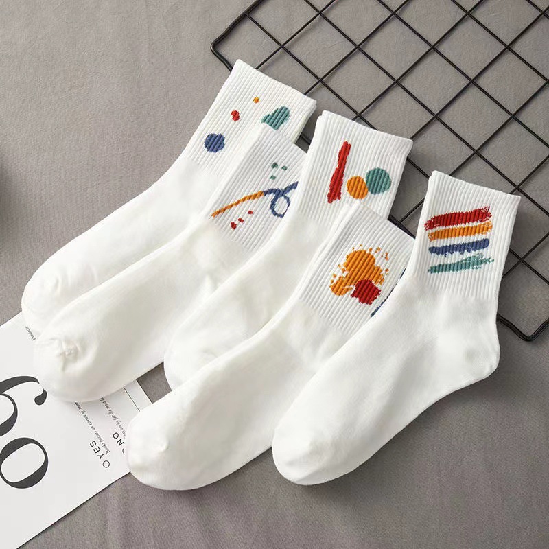 • 남녀공용 미드 튜브 양말 [미드 튜브 화이트]