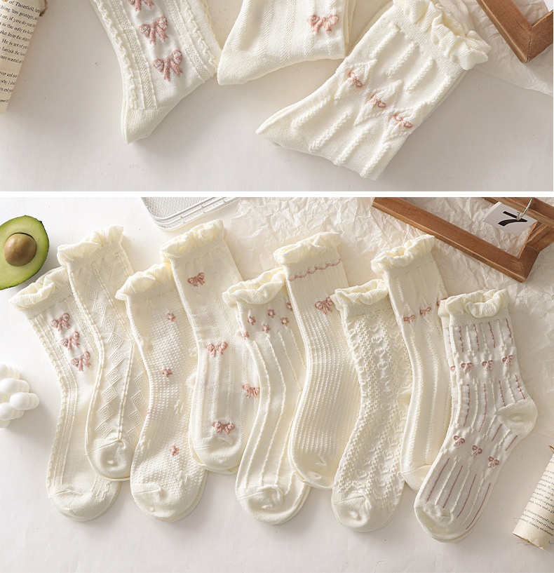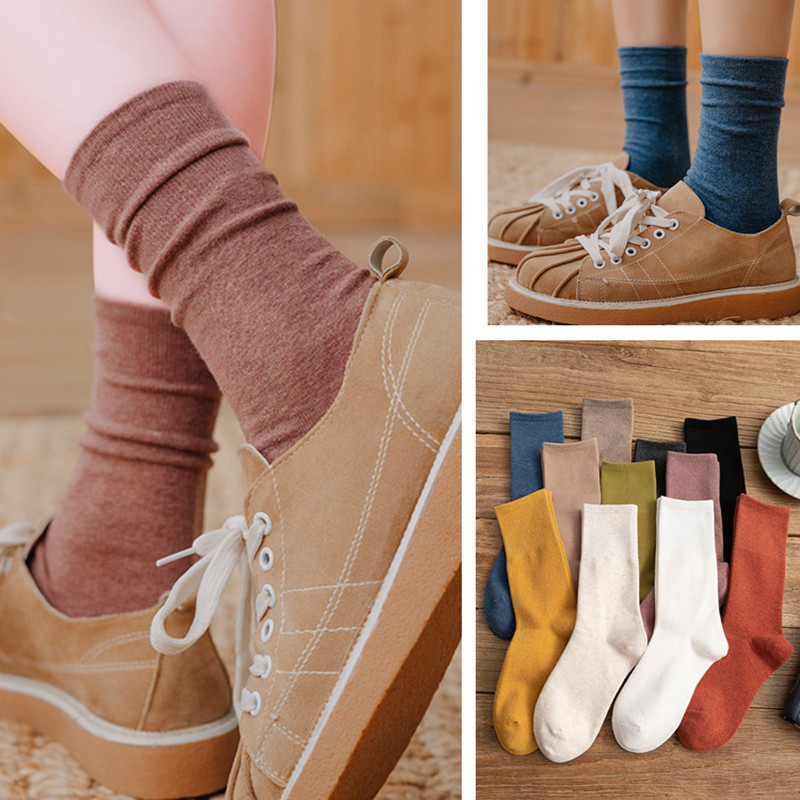 Zhuji 양말 여성용 미드 튜브 스택 양말 여성용 봄과 가을 면 유행 여성용 흰색 스타킹 로퍼 학생 땀 흡수 통기성