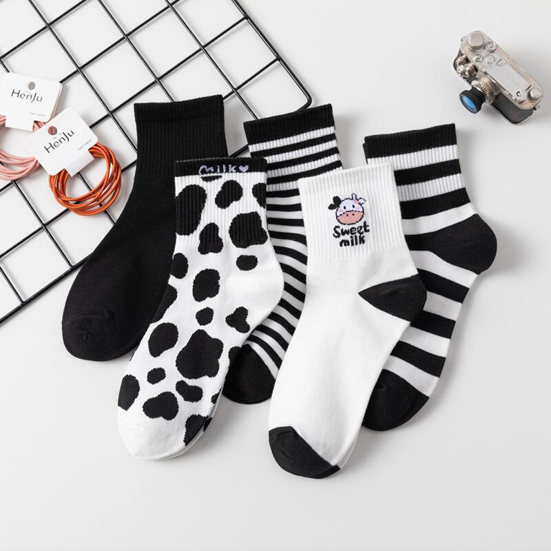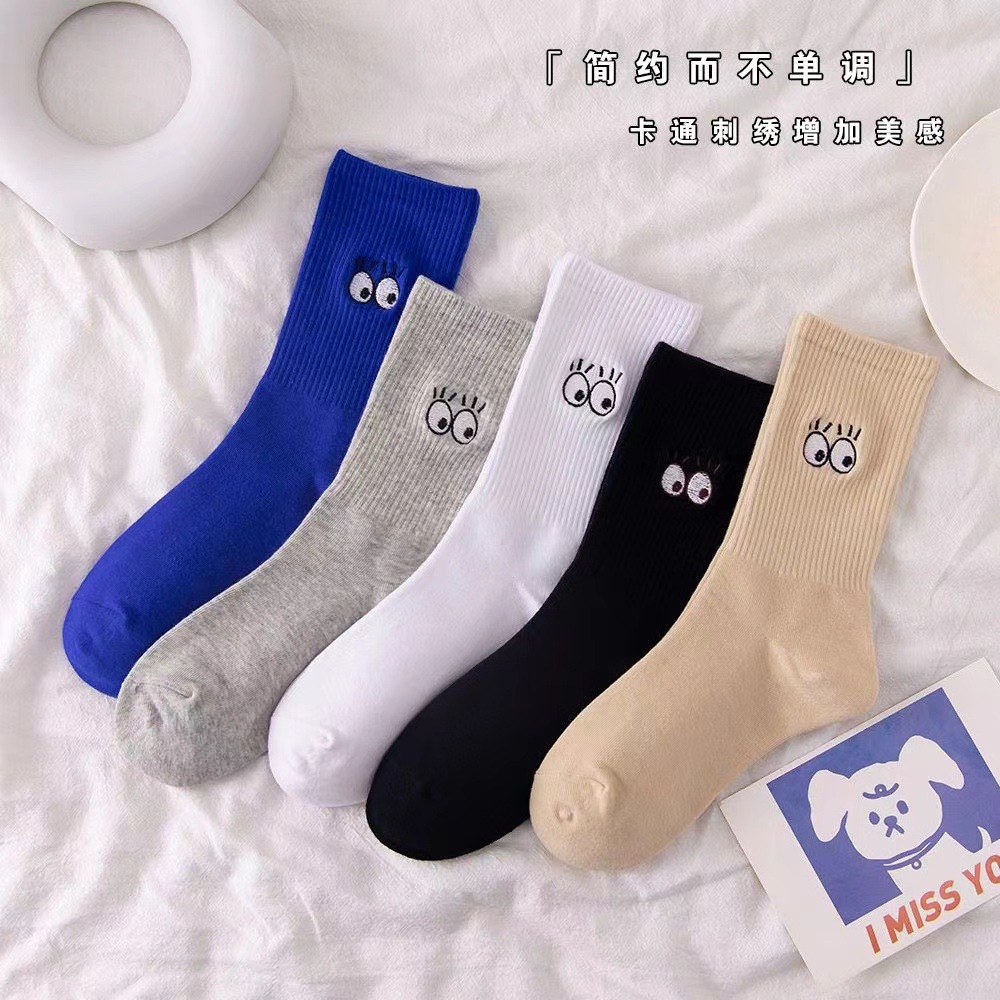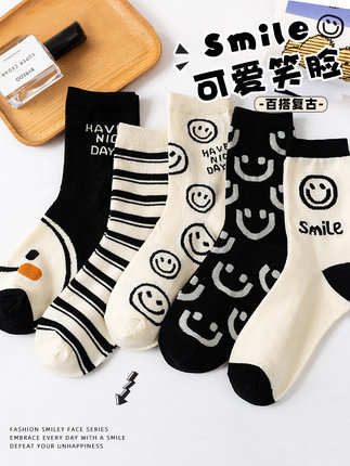 Zhuji 양말 여성용 미드 튜브 스택 양말 여성용 봄과 가을 면 유행 여성용 흰색 스타킹 로퍼 학생 땀 흡수 통기성스토어 가기