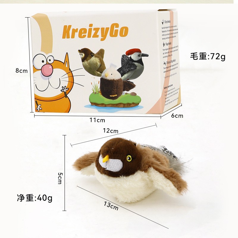 정품 참새 애완동물 봉제 장난감, 소리나게 흔들리는 새, 전동 고양이 장난감, 자가놀이 시뮬레이션 물고기 날개 흔드는 새스토어 가기