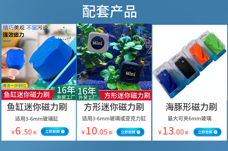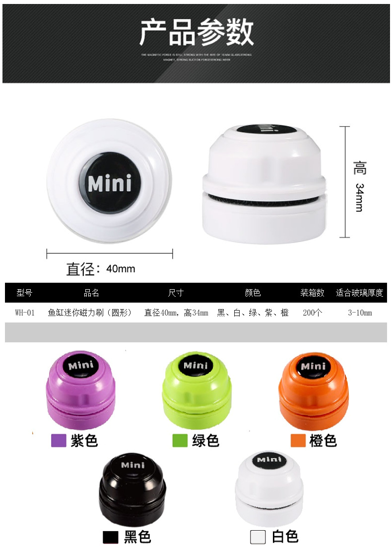 재고 라운드 미니 마그네틱 브러시 수족관 물고기 탱크 브러시 유리 조류 청소 도구 WH-01 마그네틱 브러시 도매스토어 가기