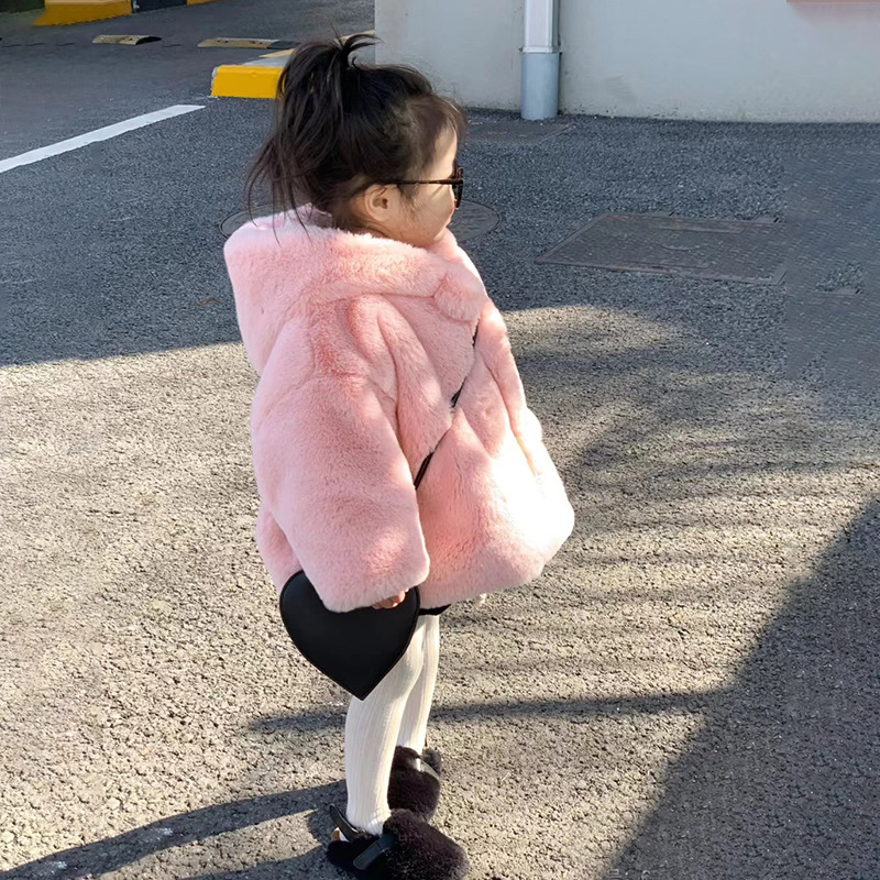 여아 핑크 두꺼운 푹신한 코트 2022 가을과 겨울 새로운 소녀의 세련된 골드 밍크 캐시미어 코트스토어 가기