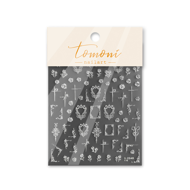 토모니 구호 네일 아트 스티커 인기 일본 복고풍 5D 네일 스티커 손으로 그린 장미 네일 아트 보석 도매