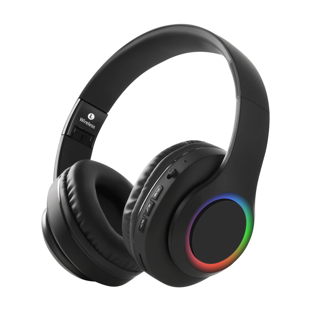 跨境直供头戴式无线蓝牙耳机七彩LED呼吸灯磨砂哑光外壳可定制logo