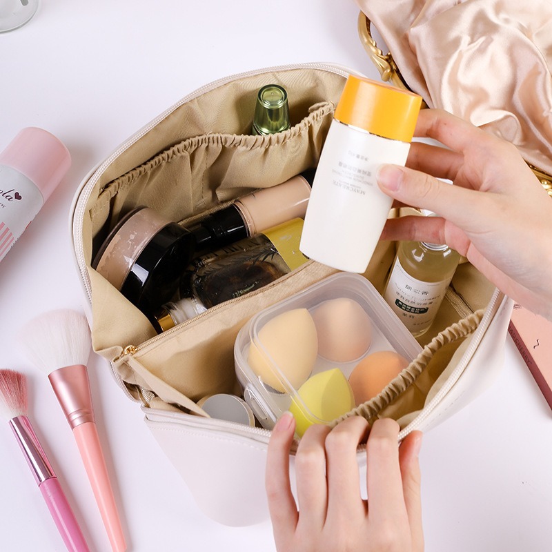 화장품 가방 PU 가죽 가방 여성용 2025 대용량 INS 휴대용 화장품 케이스 여행 세면도구 가방 화장품 수납 가방스토어 가기