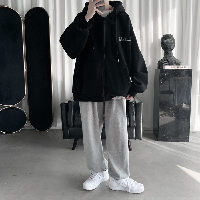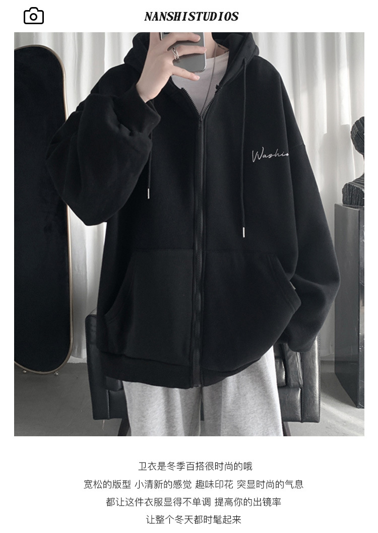 8487#【官图-开衫拉链卫衣】加绒连帽大卫衣时尚宽松卫衣大码男装