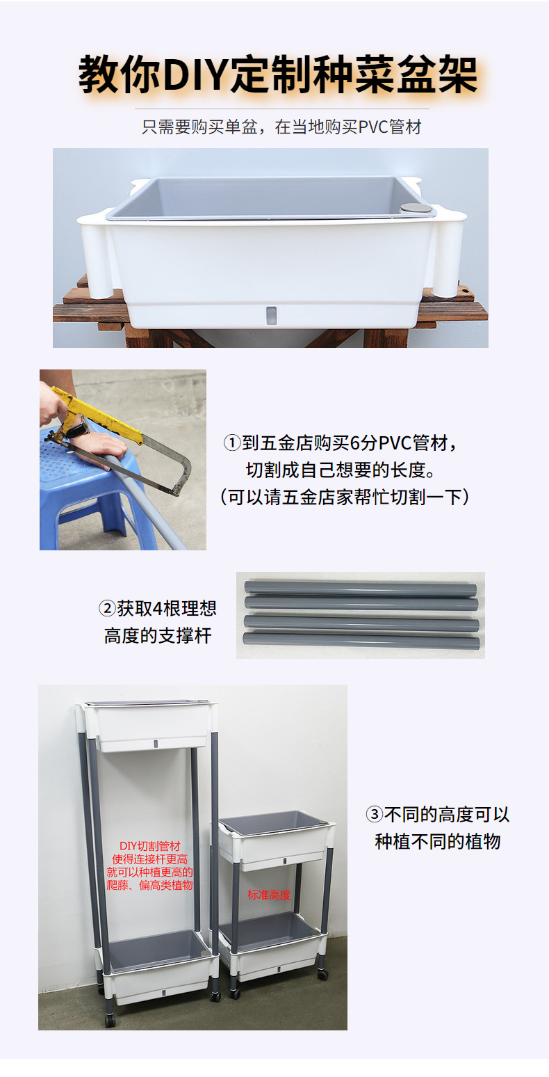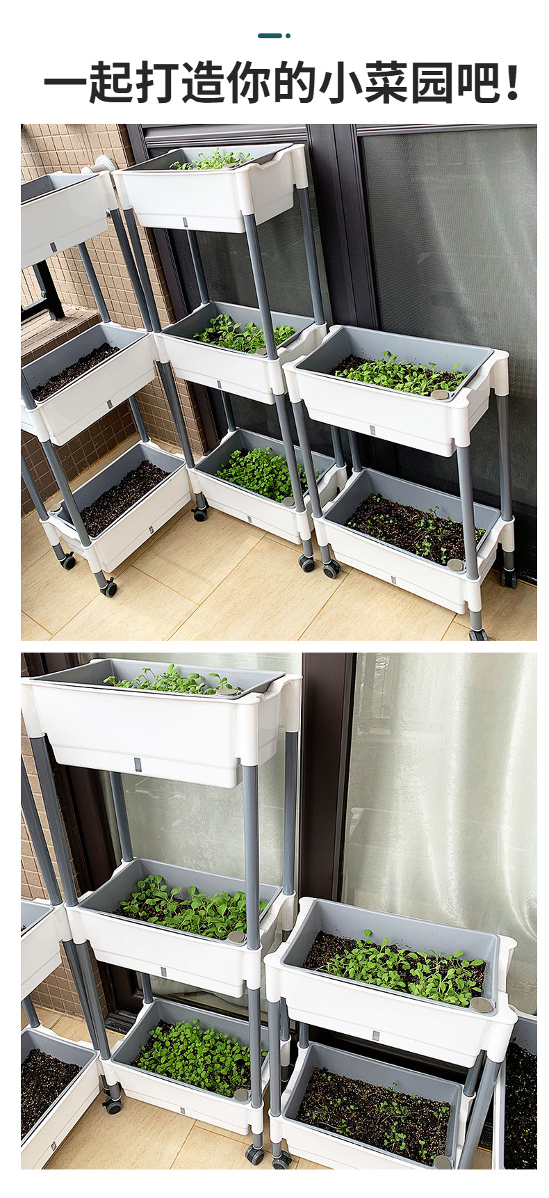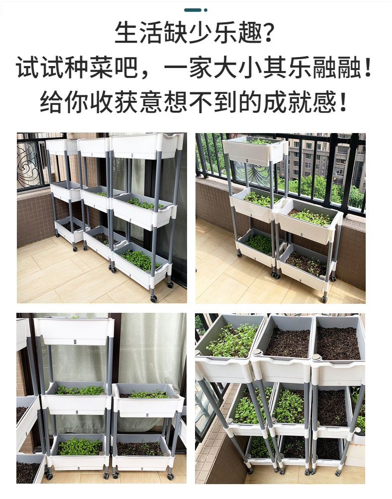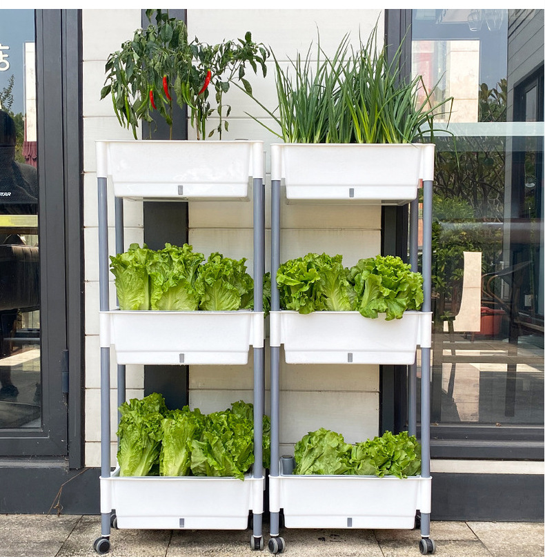 발코니 야채 냄비 게으른 화분 가족 3 차원 다층 모바일 랙 야외 직사각형 플라스틱 냄비 공장 도매