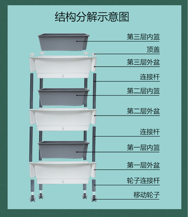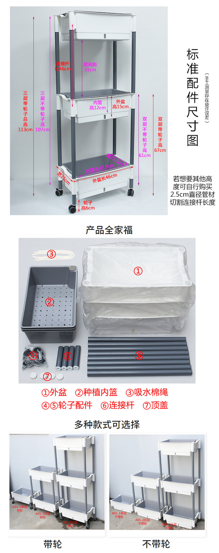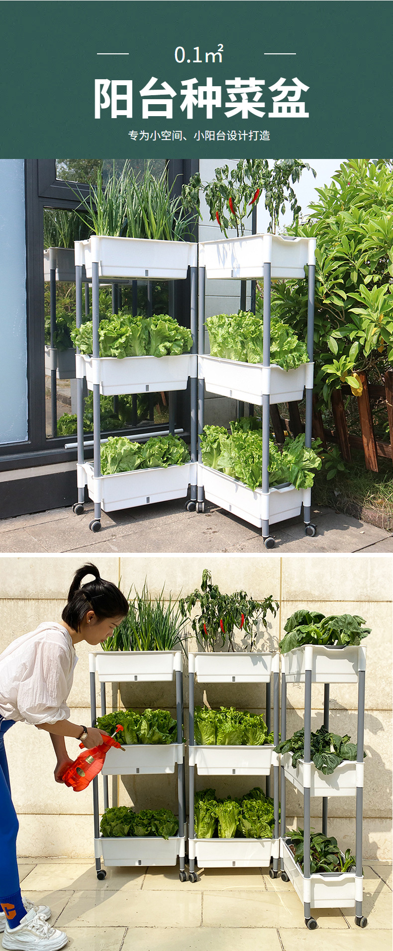 발코니 야채 냄비 게으른 화분 가족 3 차원 다층 모바일 랙 야외 직사각형 플라스틱 냄비 공장 도매