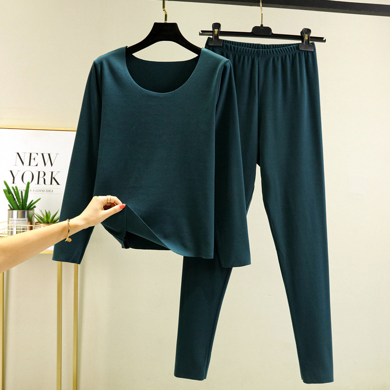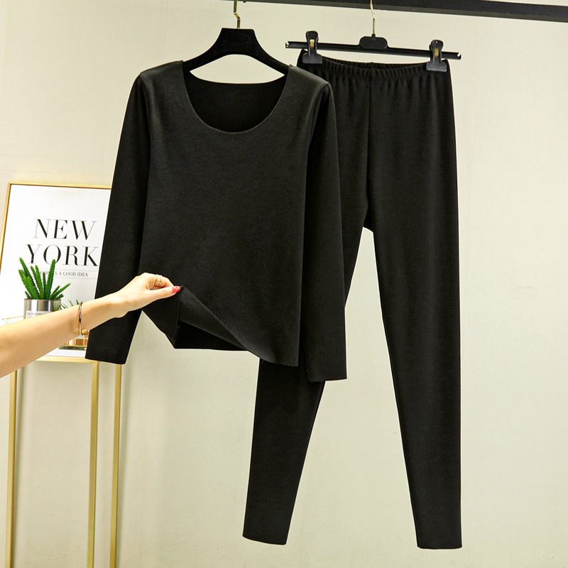 원활한 열 속옷 세트 여성의 기모 두꺼운 꽉 모든 일치 내부 바닥 셔츠 양면 양털 가을 옷과 바지스토어 가기