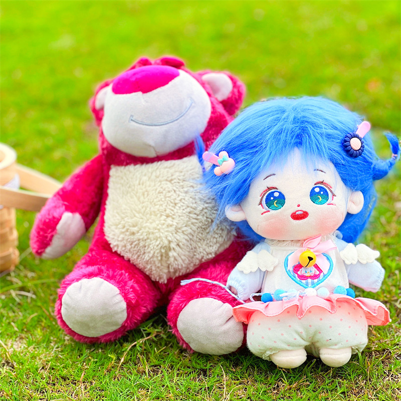 Xiaoqing Yue 무 속성 튀긴 면 인형 20cm 봉제 귀여운 인형 아기 옷 휴일 선물 재고스토어 가기