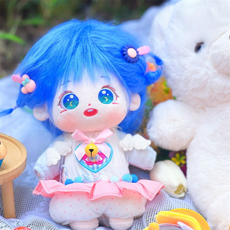 Xiaoqing Yue 무 속성 튀긴 면 인형 20cm 봉제 귀여운 인형 아기 옷 휴일 선물 재고