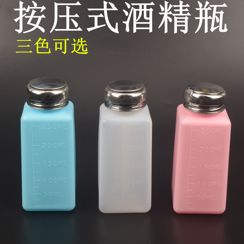 产品名称:酒精瓶 产品介绍:高效、节能、环保型酒精瓶主要用于工厂成品包装或者商标粘帖时表面清理、擦拭,是易挥发液体作业中理想容器。如:装用去渍油、白电油、白矿油擦机水、工业酒精等。这些化工原料都是挥发性能强、易燃易爆且含气体毒味大。用高效、节能、环保酒精瓶装置控制挥发、减少空气污染、维护员工身心健康、预防气爆中毒之危险。 一次加料可长期使用。实验证明,采用高效、节能、环保型酒精瓶液料可节省(控件挥发)50%以上,提高工作效率,上下班容易收拾,作业安全方便。 产品规格:100ml、200ml、250ml。注意事项:酒精瓶忌用粘胶及粘性之液体!