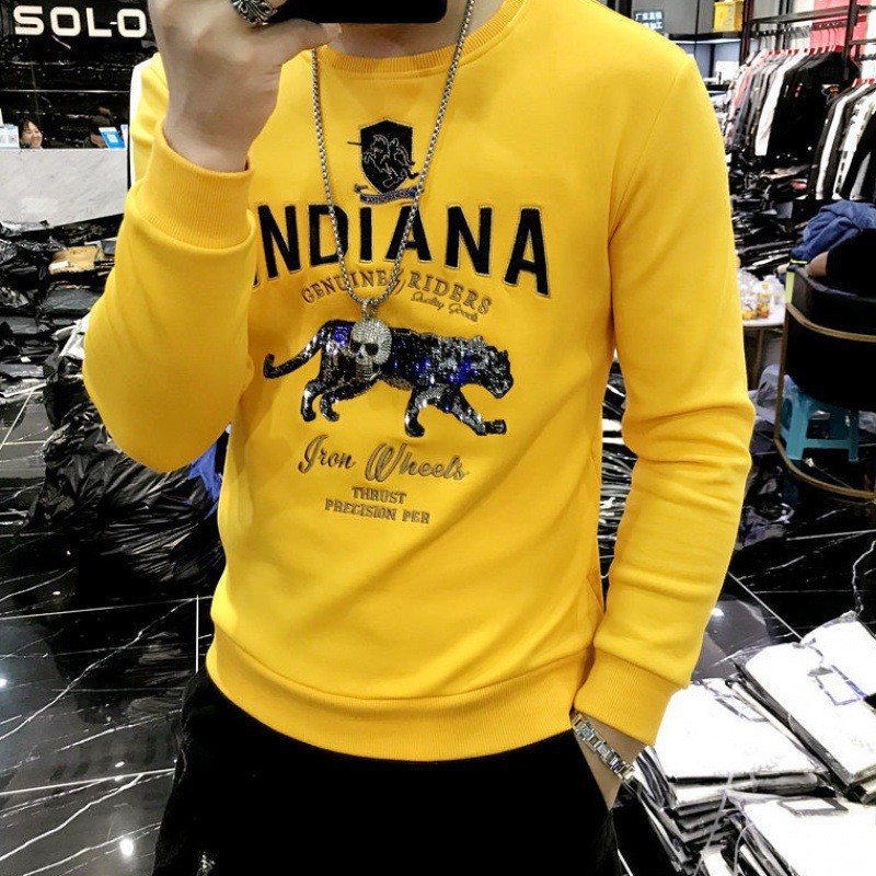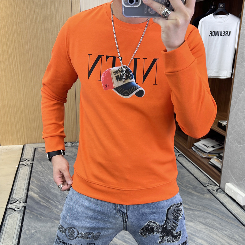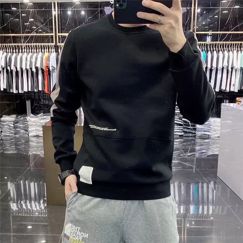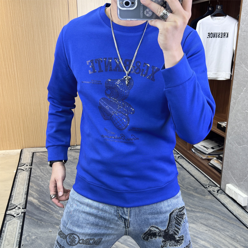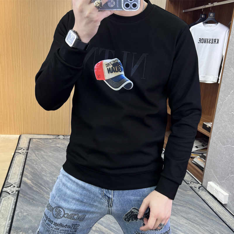 2024 가을 새로운 스웨터 남성 패션 트렌드 긴 소매 티셔츠 풀오버 탑 슬림 라운드 넥 기본 셔츠 유럽 상품스토어 가기