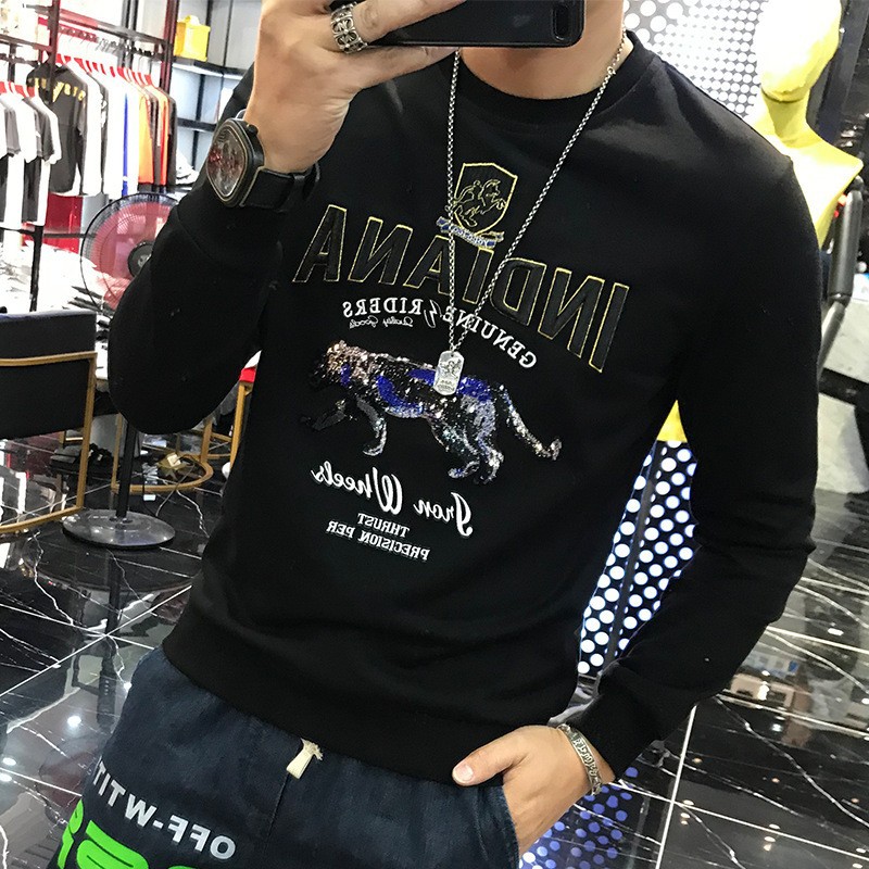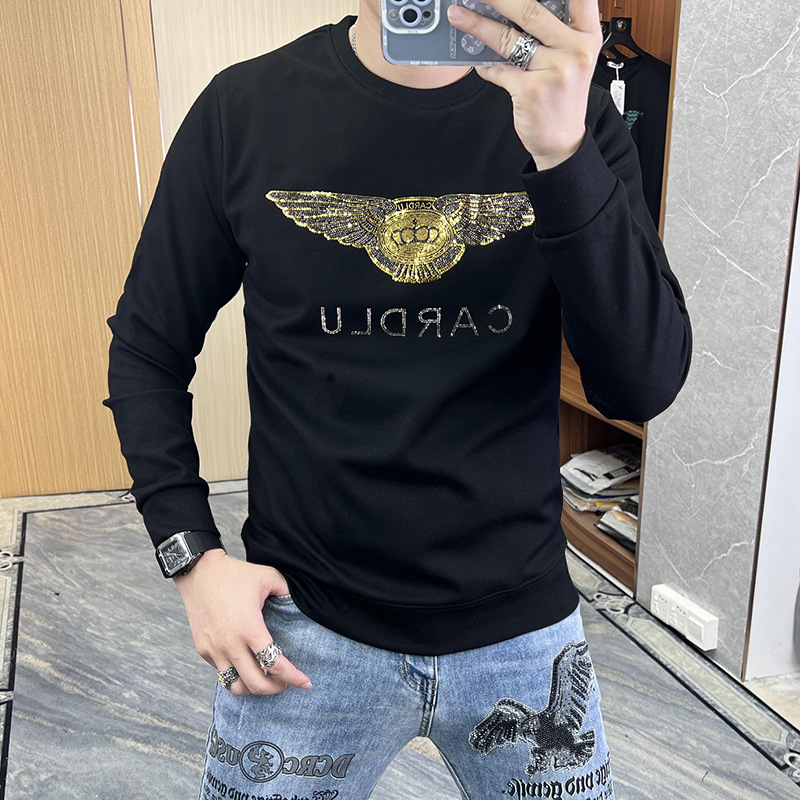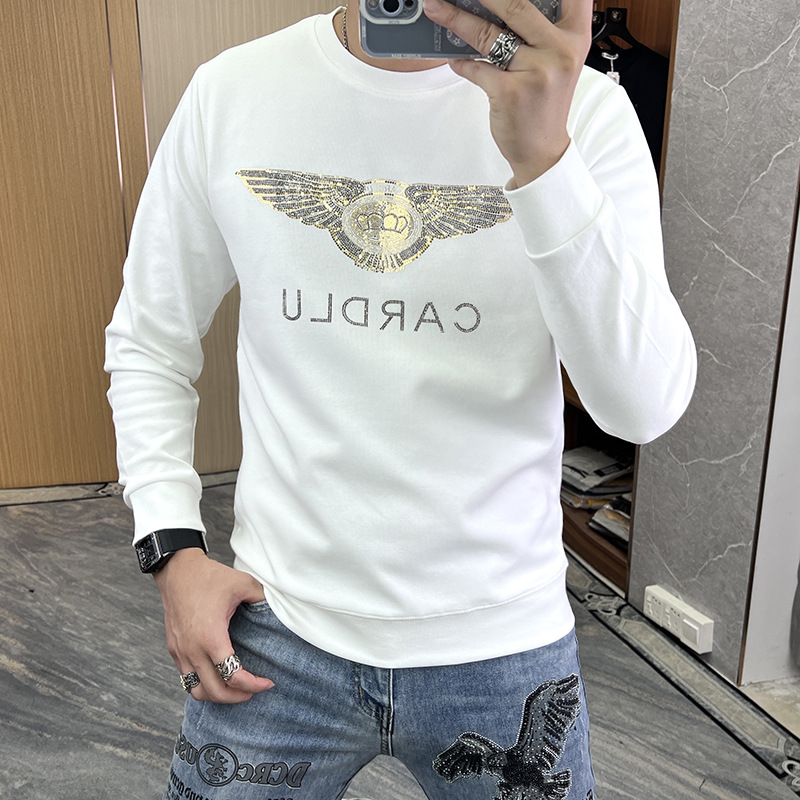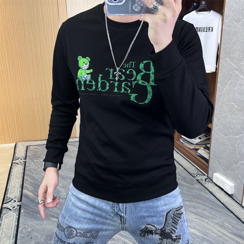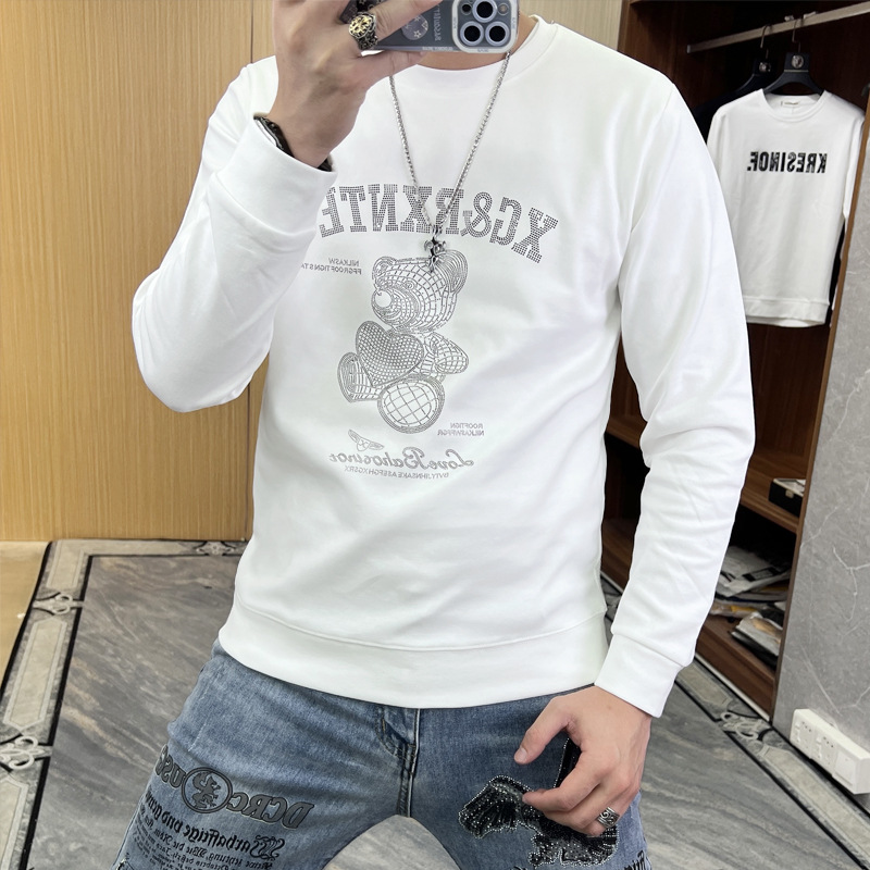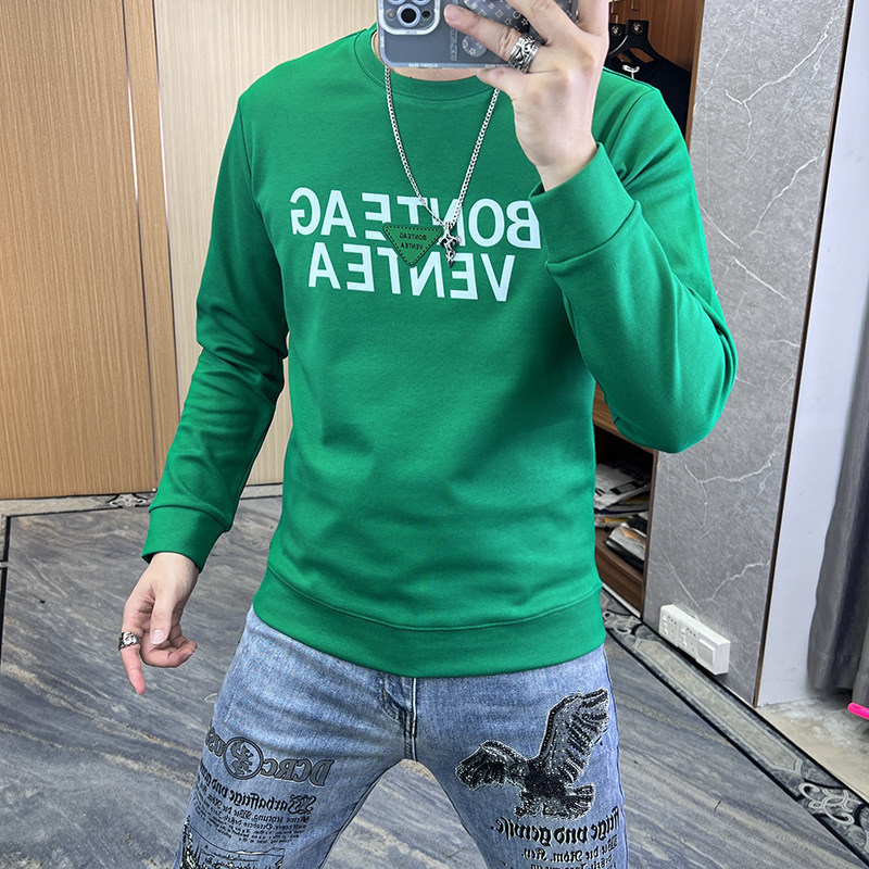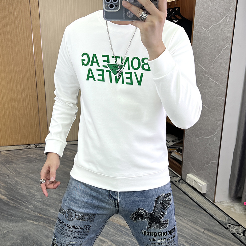 2024 가을 새로운 스웨터 남성 패션 트렌드 긴 소매 티셔츠 풀오버 탑 슬림 라운드 넥 기본 셔츠 유럽 상품