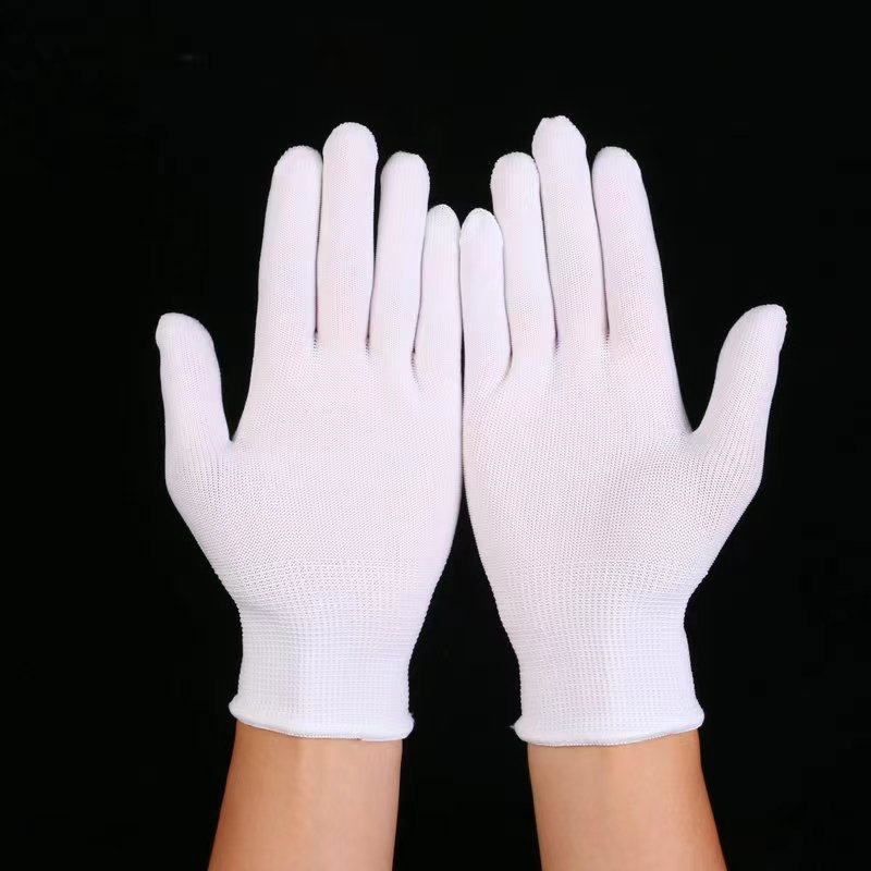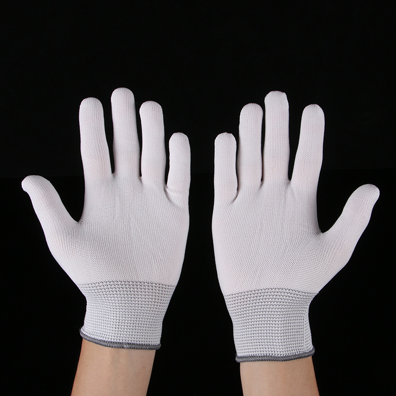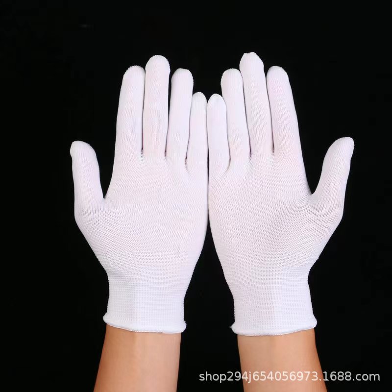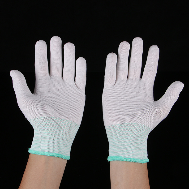 13 바늘 장갑 인공 잠금 가장자리 제조 업체 공급 접착제 플레이트없이 얇은 흰색 나일론 장갑 통기성 소프트스토어 가기
