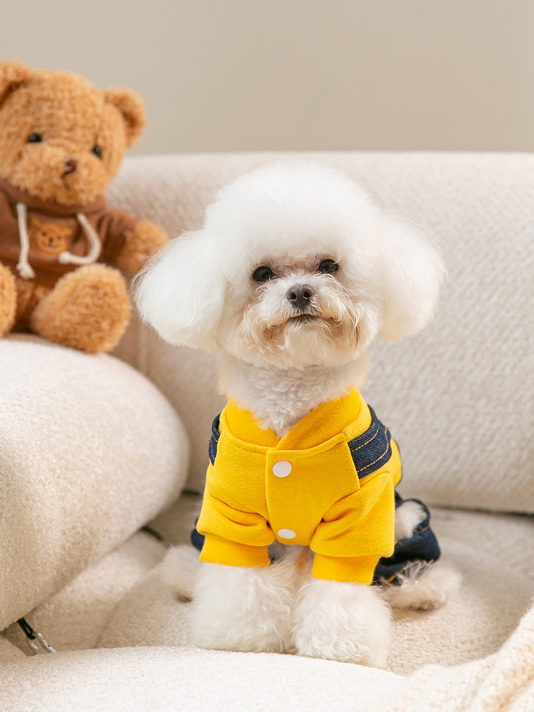 곰 데님 네 발 스트랩 바지 얇은 겨울 테디 베어 애완 동물 강아지 옷 작은 개 가을과 겨울스토어 가기
