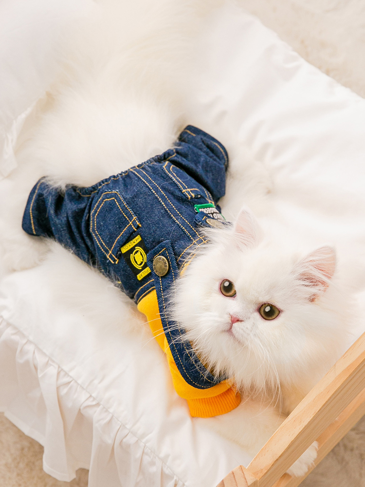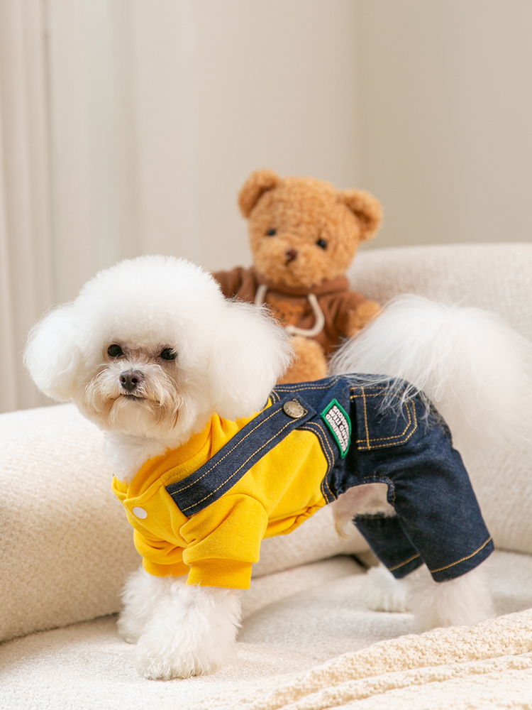 곰 데님 네 발 스트랩 바지 얇은 겨울 테디 베어 애완 동물 강아지 옷 작은 개 가을과 겨울