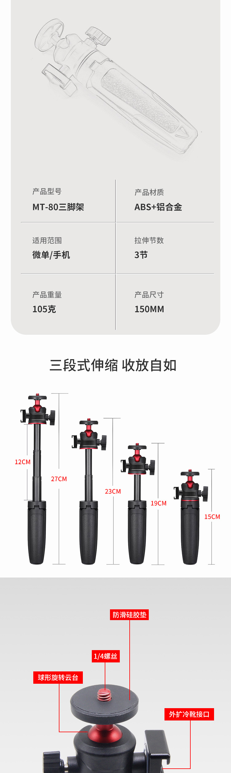 미니 휴대용 삼각대 라이브 소형 망원경 다기능 마이크로 싱글 카메라 브래킷 휴대용 PTZ 셀카 스틱