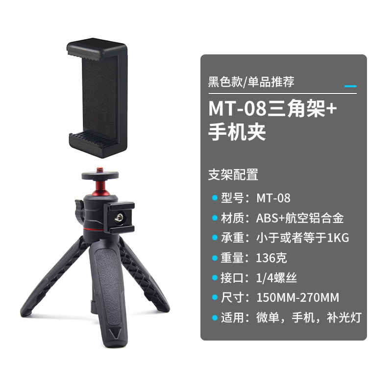 • 블랙 MT-08 삼각대 연장봉 + ST-07 전화 클립