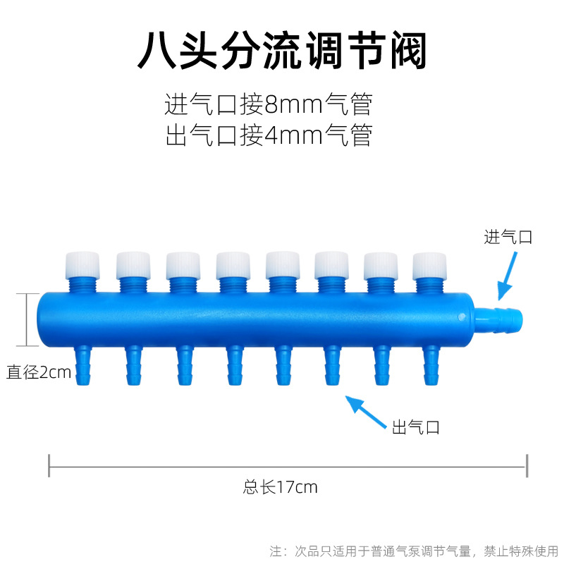 分流器接到气泵上,因不同孔位所接负载压力不同,会导致出气泡量有差异,这并非分流器质量问题也属正常现象还请知晓哦!