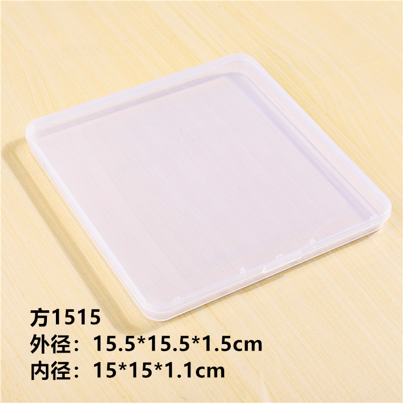 | 方1515 | 15.5*15.5*1.5cm | 15*15*1.1cm | 1.5mm | 75g | 240个 | 高透明 |
