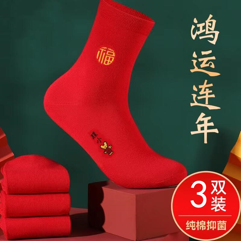 Benningian 빨간 양말 토끼의 해 여자 양말 여자 양말 남자 양말 커플 토끼 축제 가을/겨울 2023 남자스토어 가기