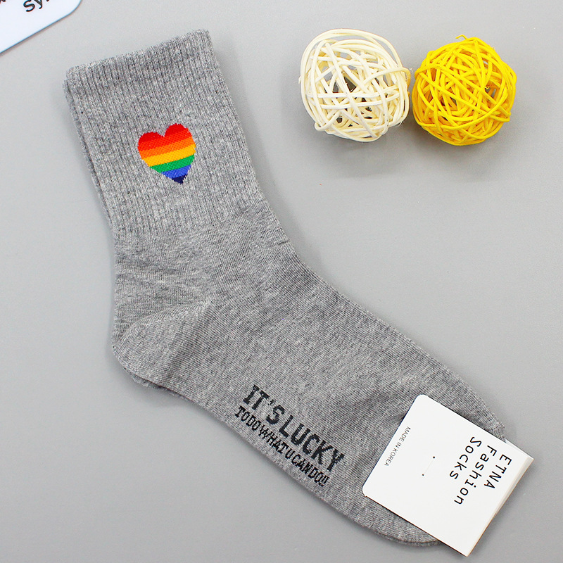 EWC0013 가을과 겨울 새 한국 동대문 맞춤형 레인보우 러브 패턴 달콤한 스타일 여성용 미드 스타일 양말스토어 가기