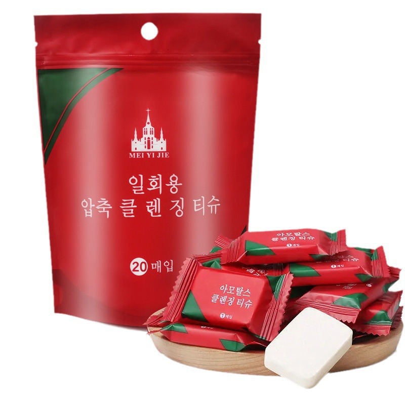 한국 압축 수건 여행 크기 두꺼운 휴대용 캔디 클렌징 수건 면 부드러운 수건 일회용 얼굴 수건 도매