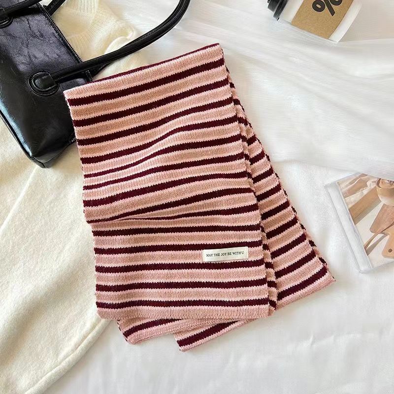 새로운 일본과 한국 스타일 달콤한 니트 스트라이프 스카프 여성 학생 두꺼운 따뜻한 목도리 커플 모든 매치 컬러 매칭 스카프