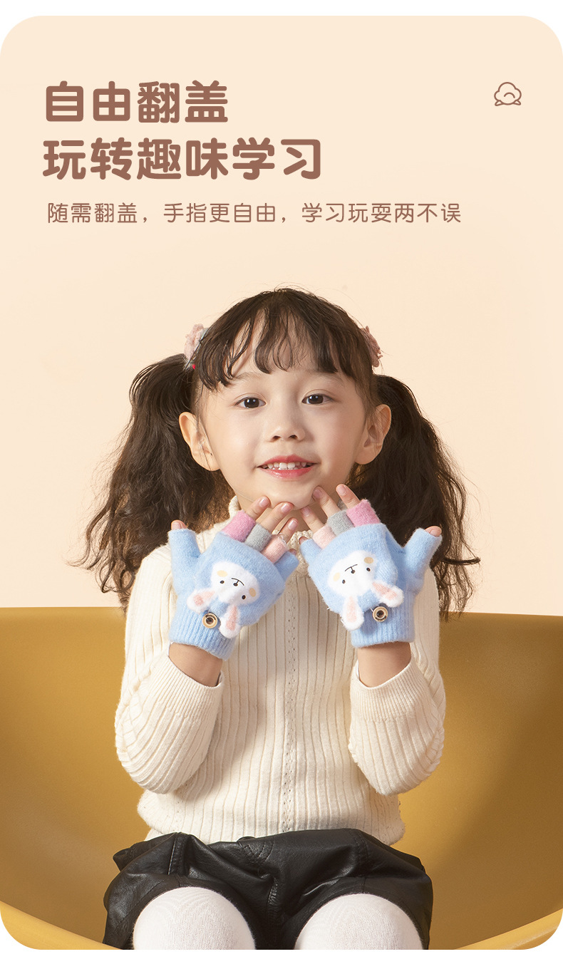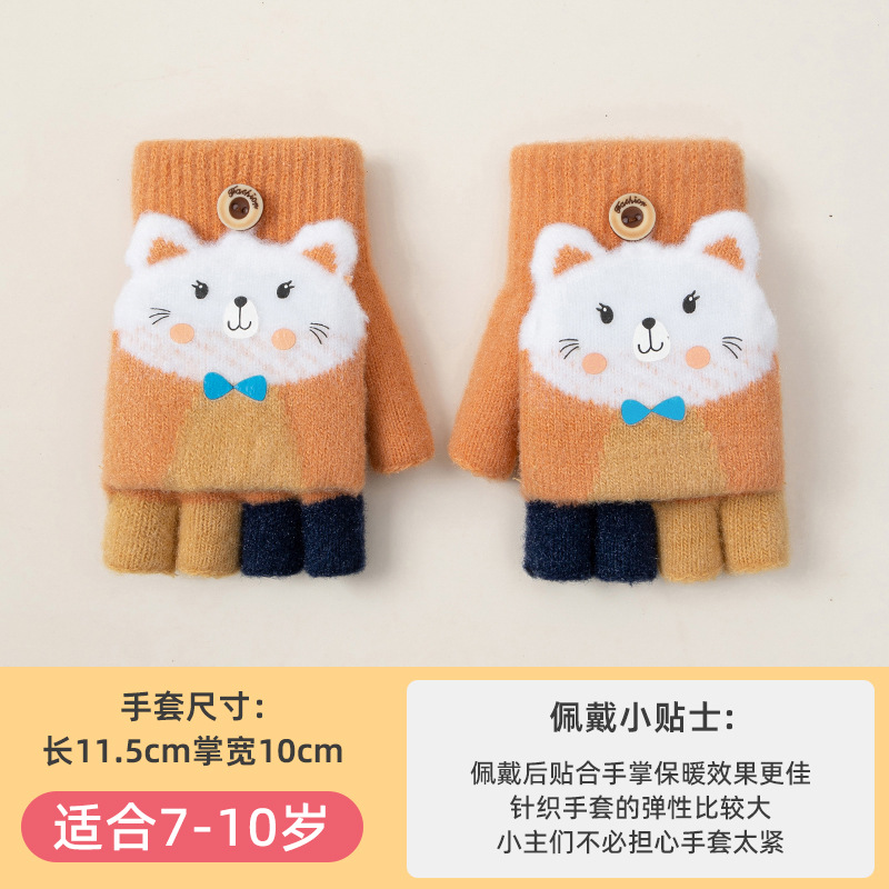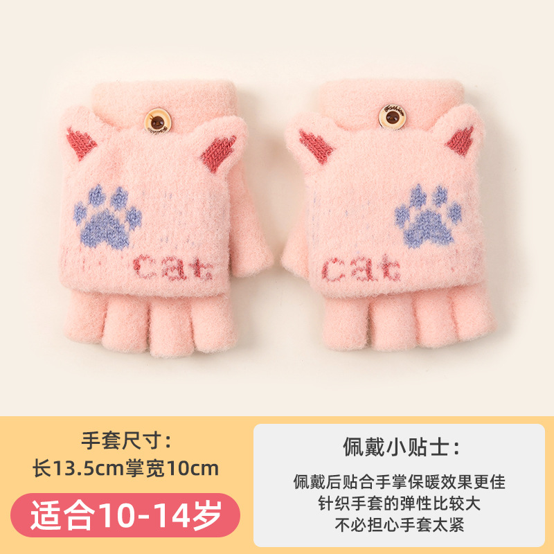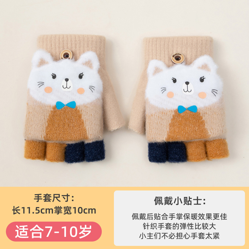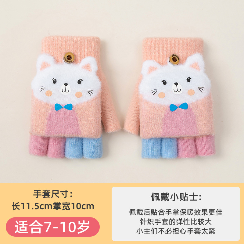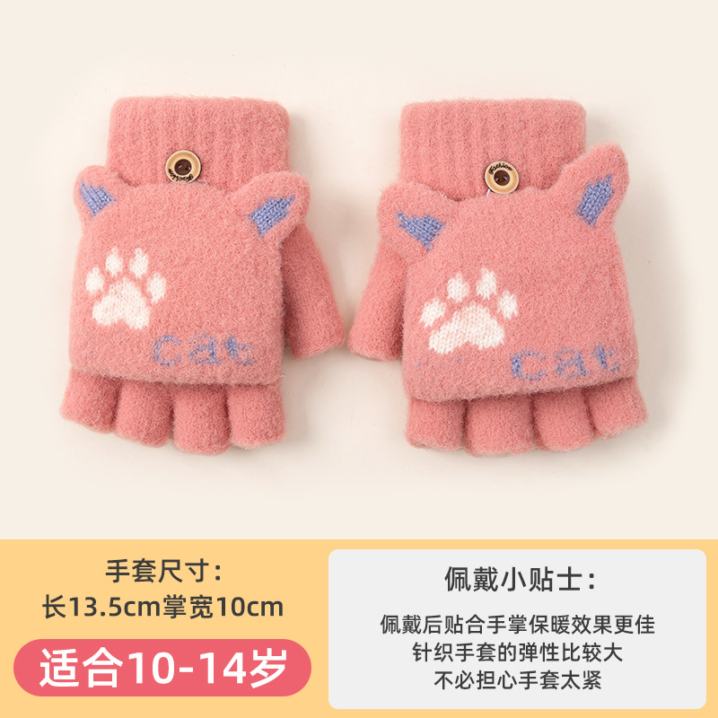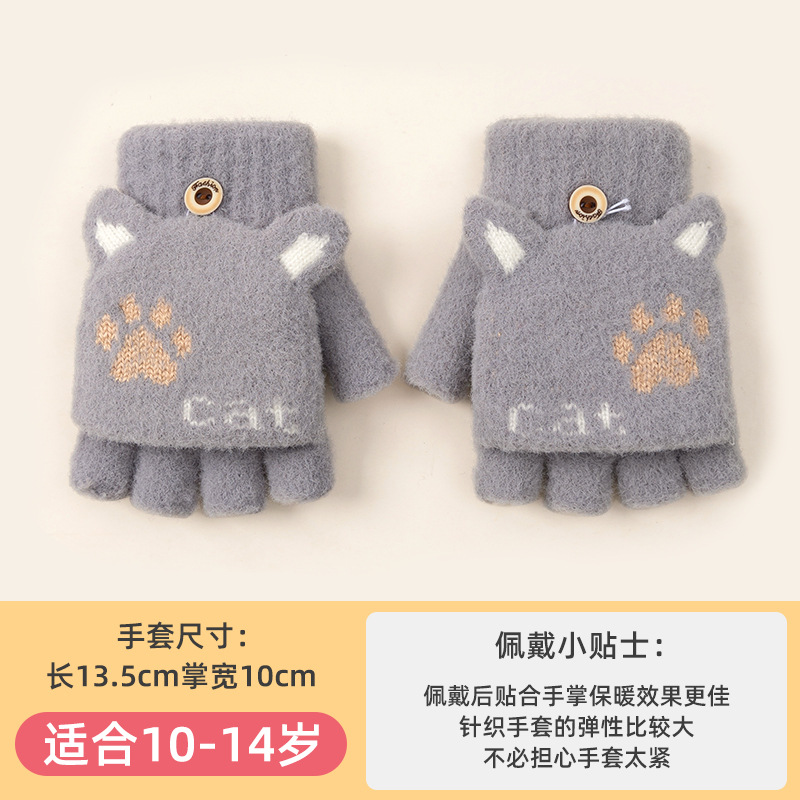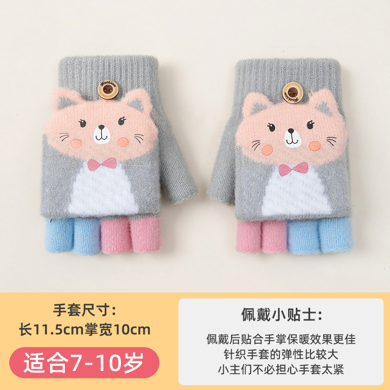 어린이 장갑 가을과 겨울 따뜻한 반 손가락 플립 만화 귀여운 니트 오픈 핑거 기모 남성 학생 쓰기 도매스토어 가기