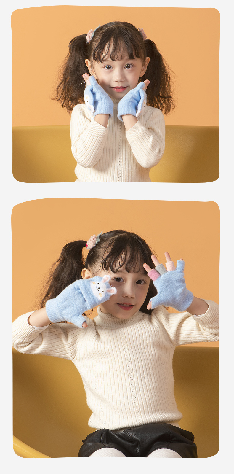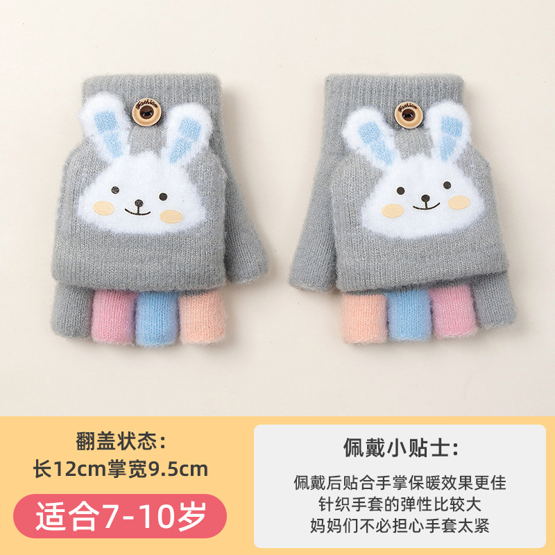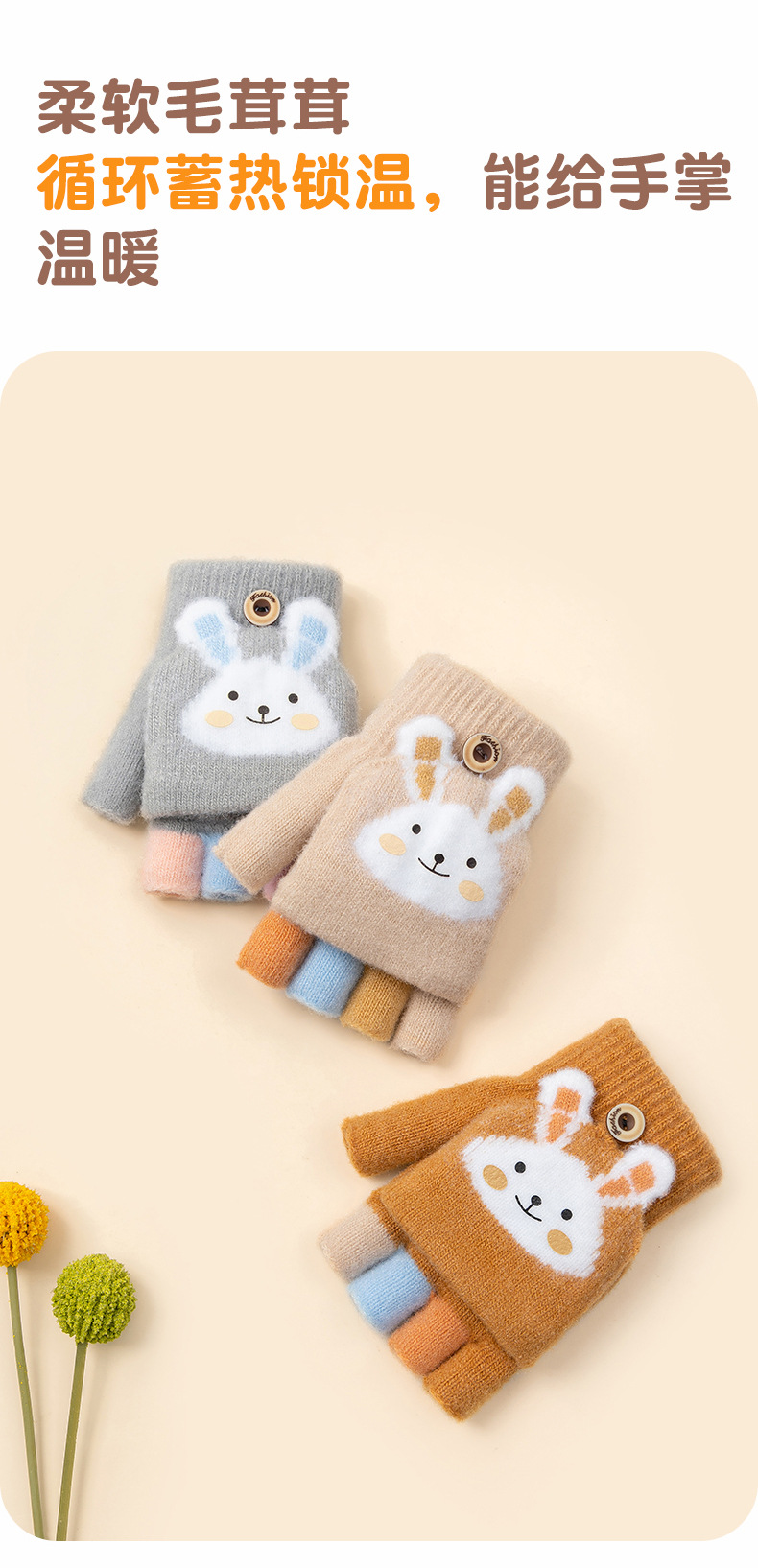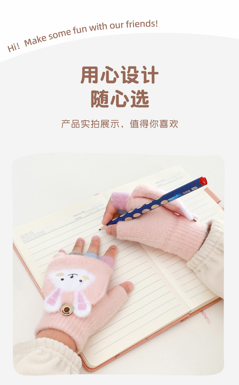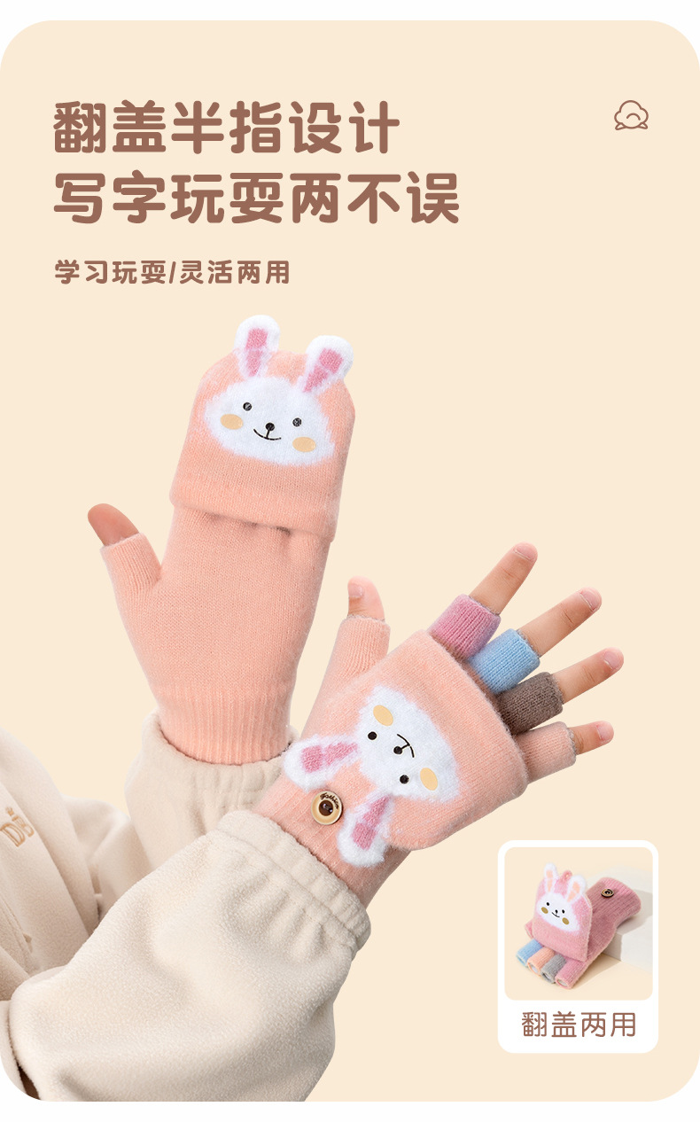 어린이 장갑 가을과 겨울 따뜻한 반 손가락 플립 만화 귀여운 니트 오픈 핑거 기모 남성 학생 쓰기 도매스토어 가기