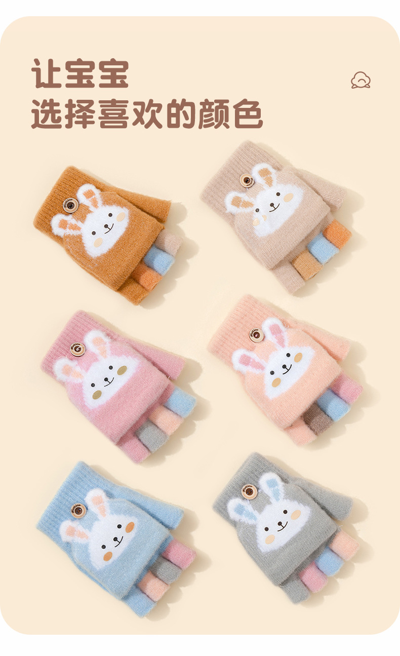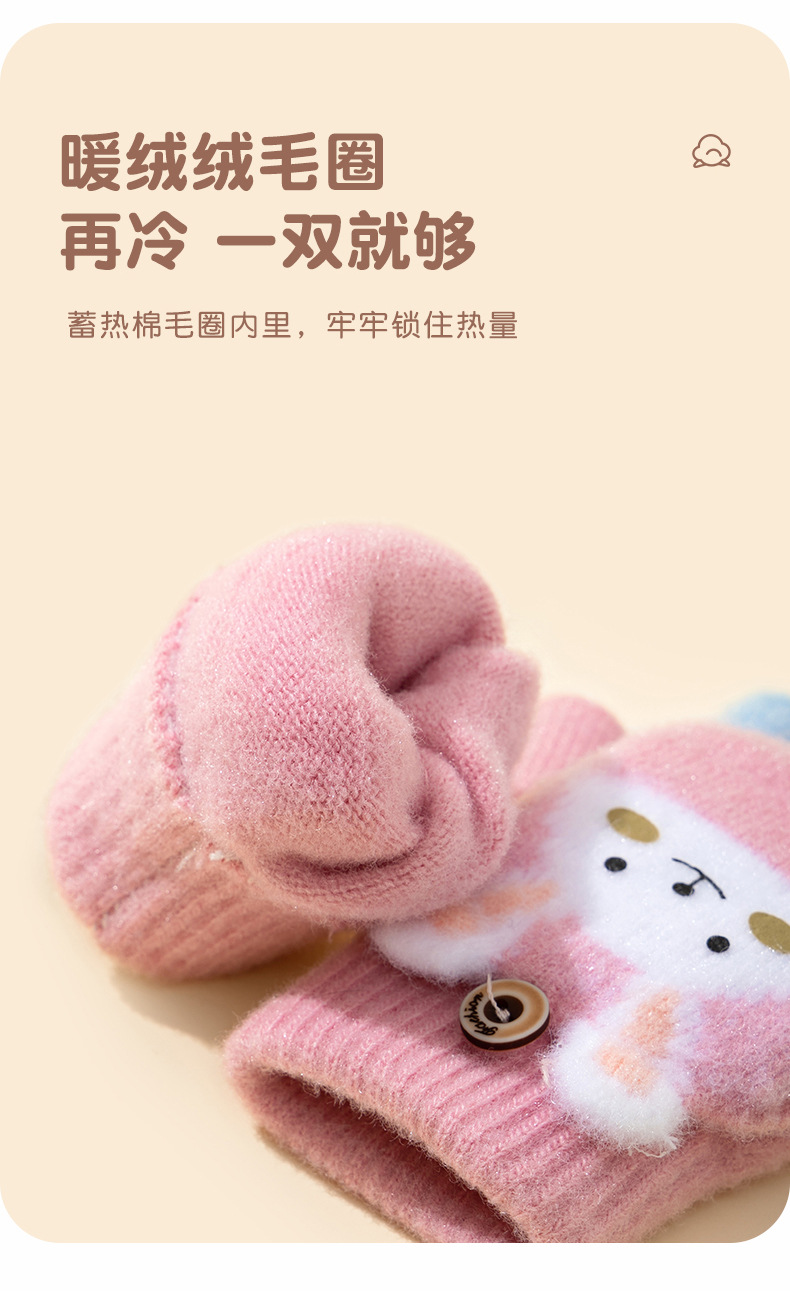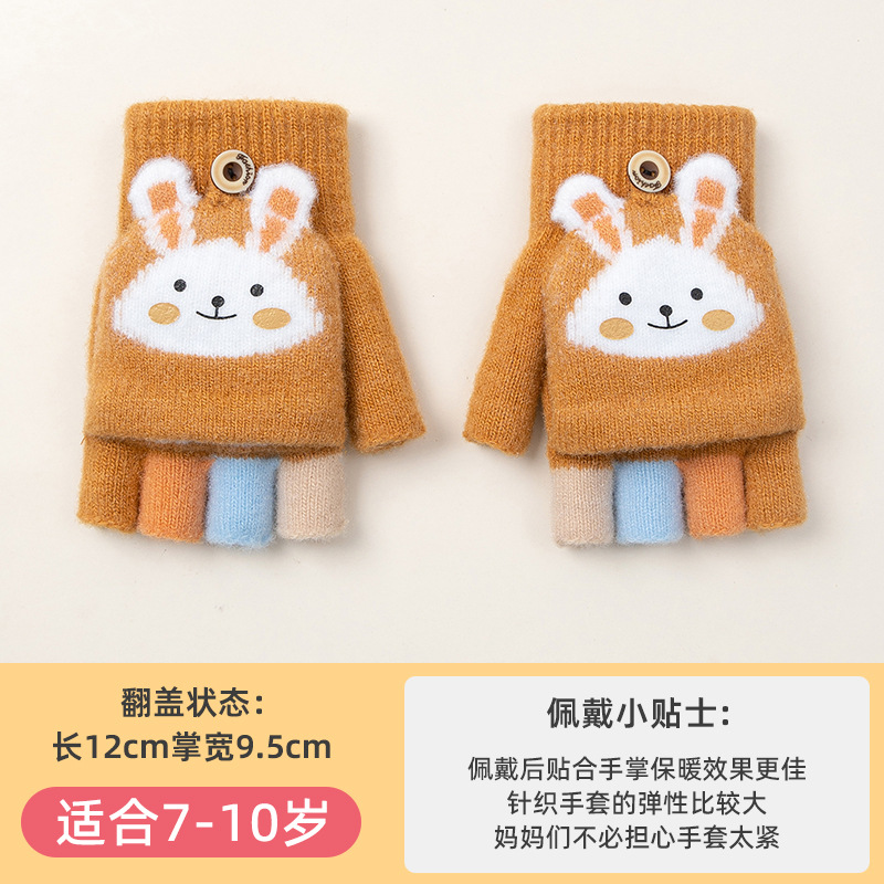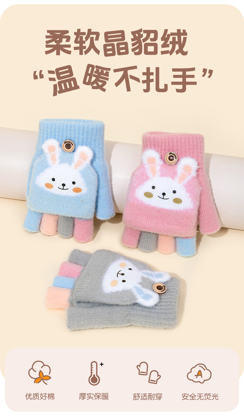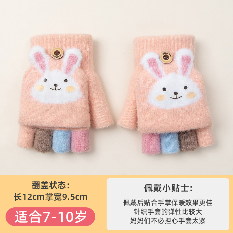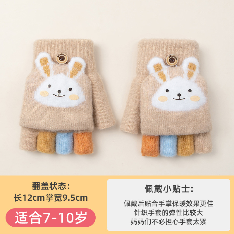 어린이 장갑 가을과 겨울 따뜻한 반 손가락 플립 만화 귀여운 니트 오픈 핑거 기모 남성 학생 쓰기 도매스토어 가기