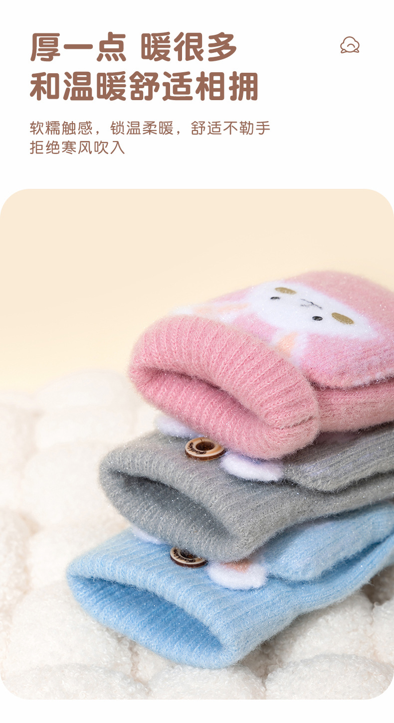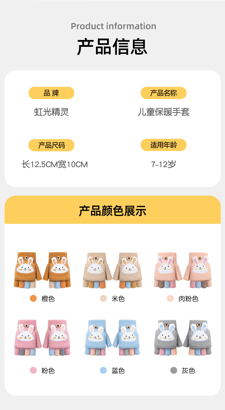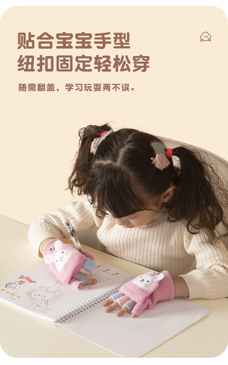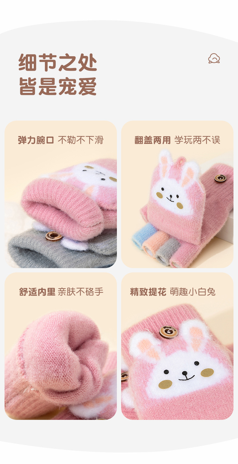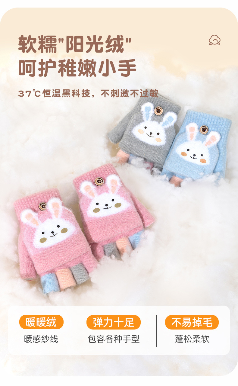 어린이 장갑 가을과 겨울 따뜻한 반 손가락 플립 만화 귀여운 니트 오픈 핑거 기모 남성 학생 쓰기 도매스토어 가기