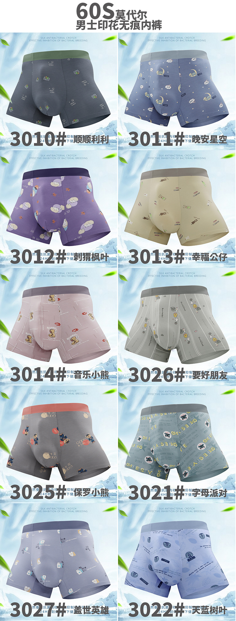 새로운 60 남성 인쇄 속옷 모달 복서 반바지 뽕나무 실크 싱글 짧은 바지 남성 복서 바지스토어 가기