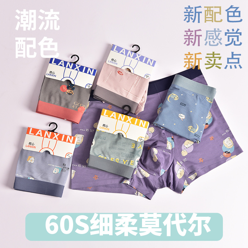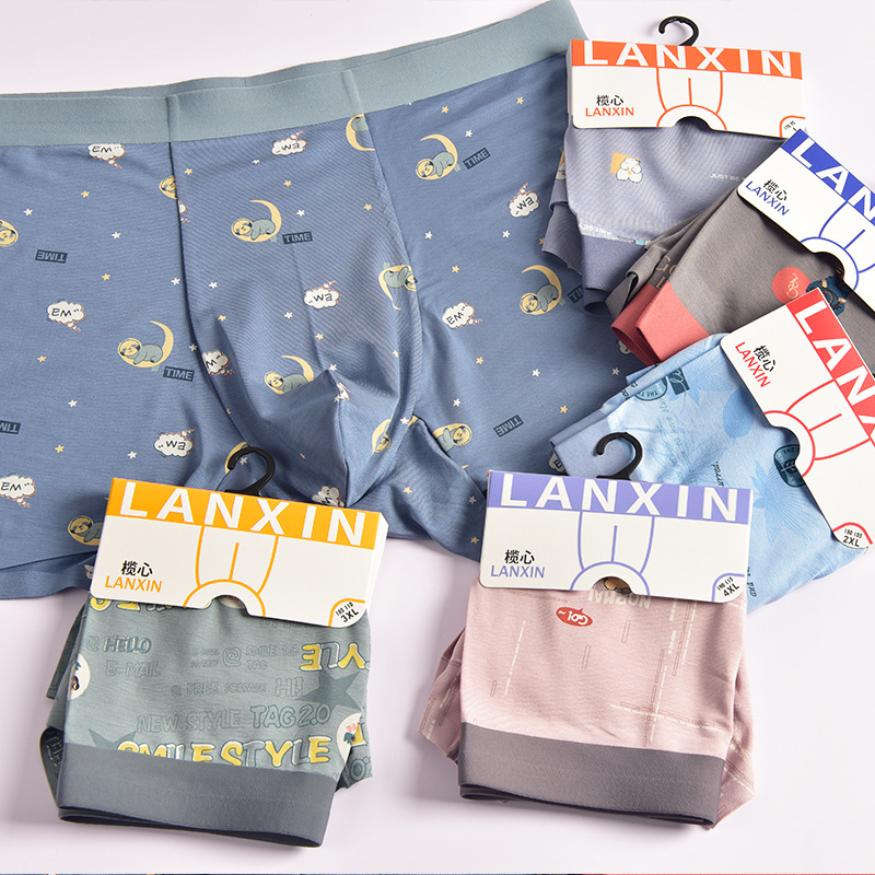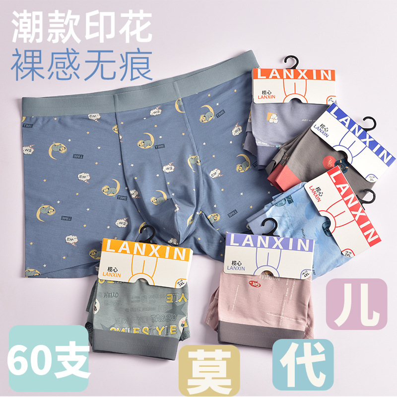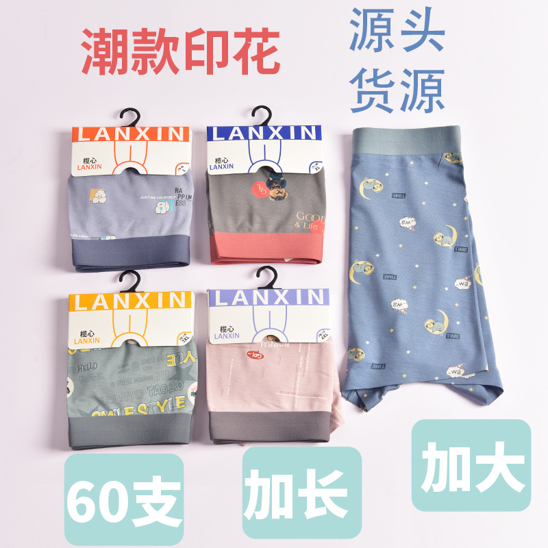 새로운 60 남성 인쇄 속옷 모달 복서 반바지 뽕나무 실크 싱글 짧은 바지 남성 복서 바지