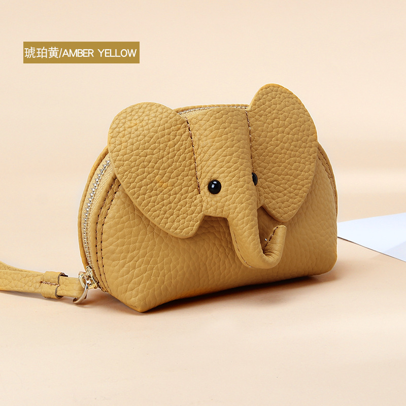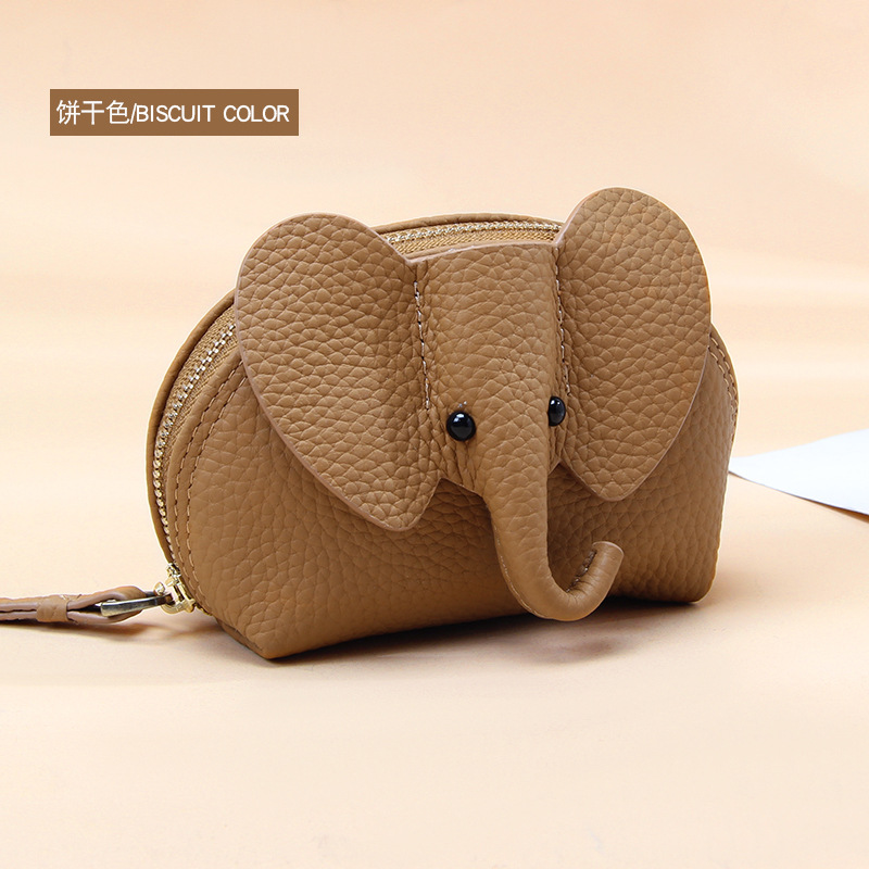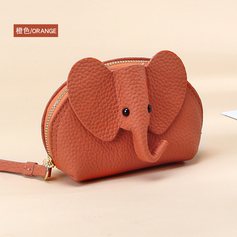 真皮女士迷你零钱包钥匙扣可爱创意大象日系零钱袋ins硬币收纳包