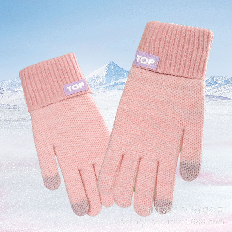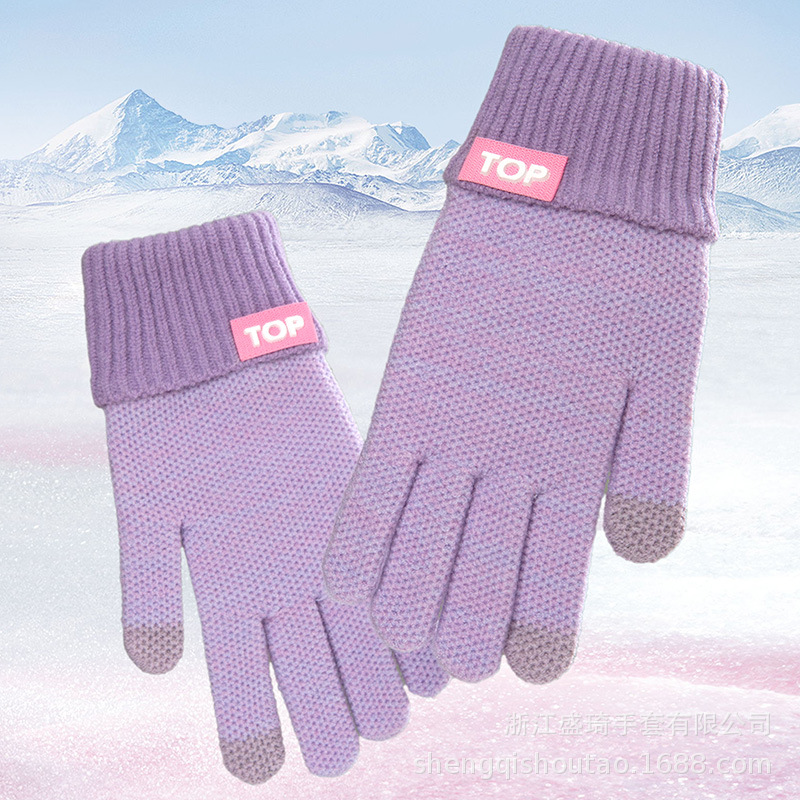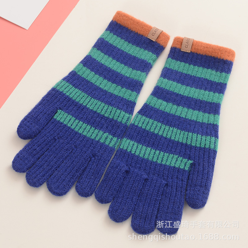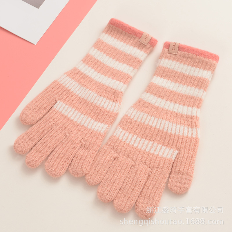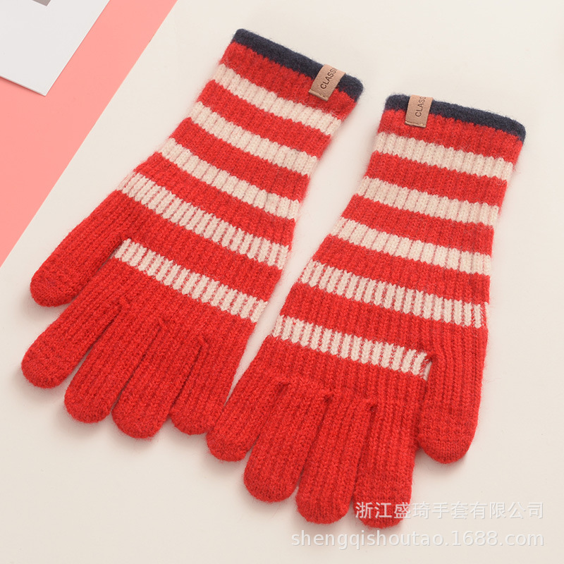 겨울 새로운 여성의 니트 긴 5 손가락 장갑 정품 가죽 터치 스크린 패션 줄무늬 야외 사이클링 냉난방 및 보온