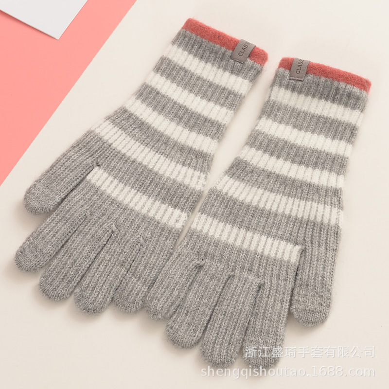 겨울 새로운 여성의 니트 긴 5 손가락 장갑 정품 가죽 터치 스크린 패션 줄무늬 야외 사이클링 냉난방 및 보온스토어 가기