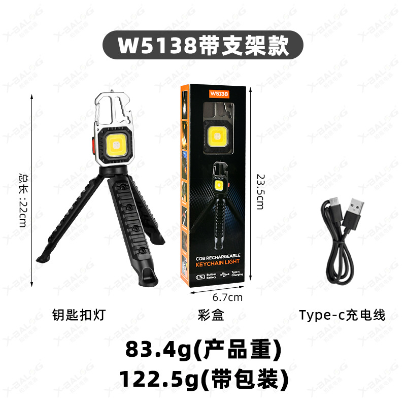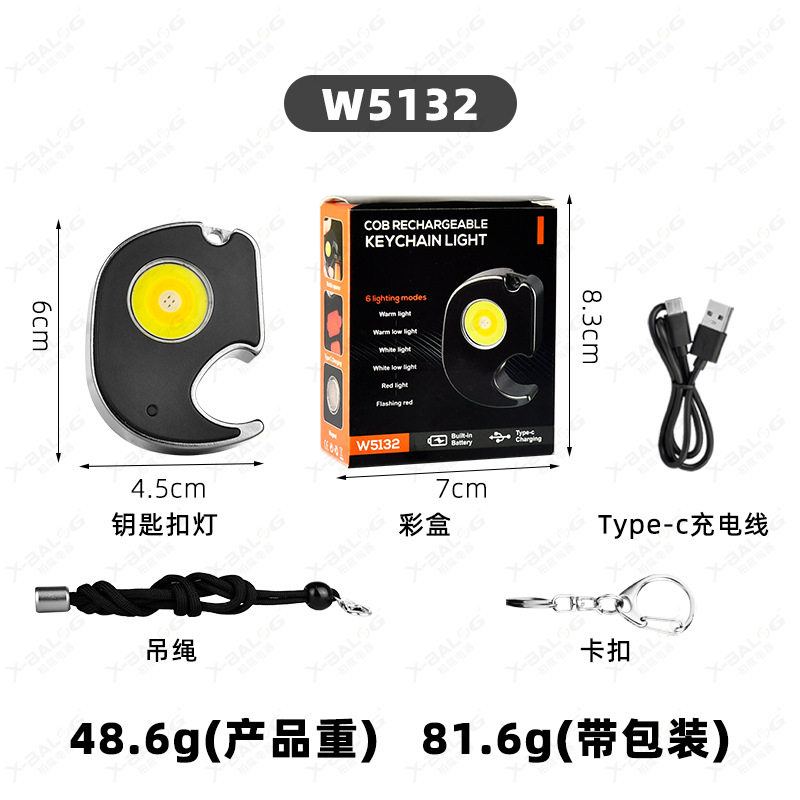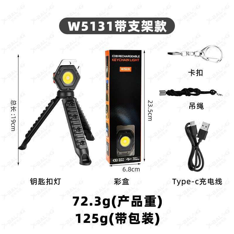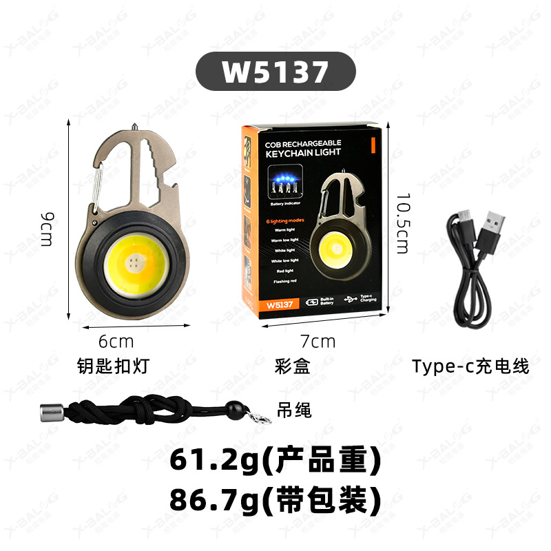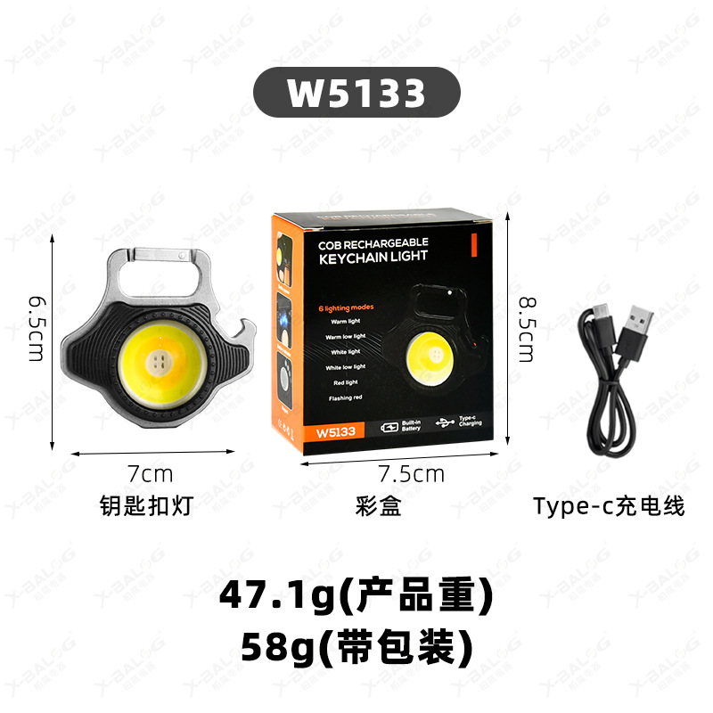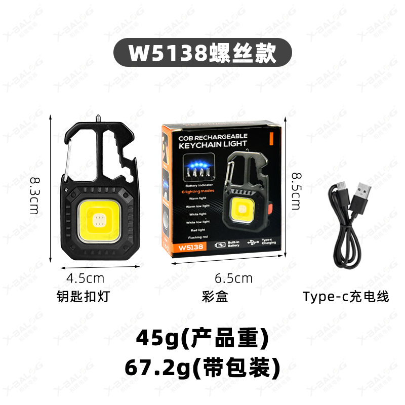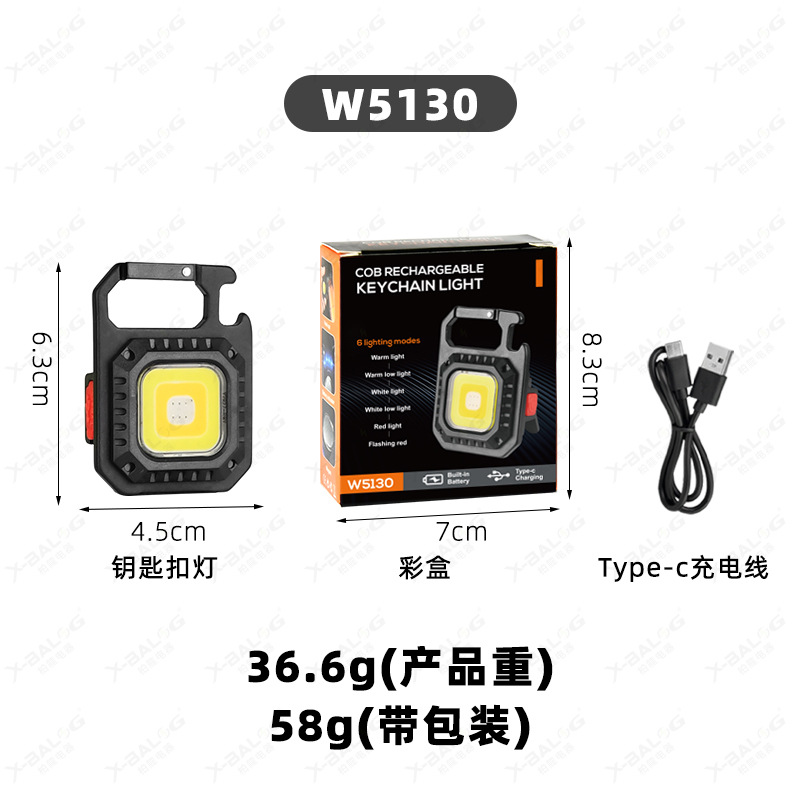 USB 충전식 키체인 라이트 미니 손전등 COB 정비 라이트 병따개 야외 비상 작업등