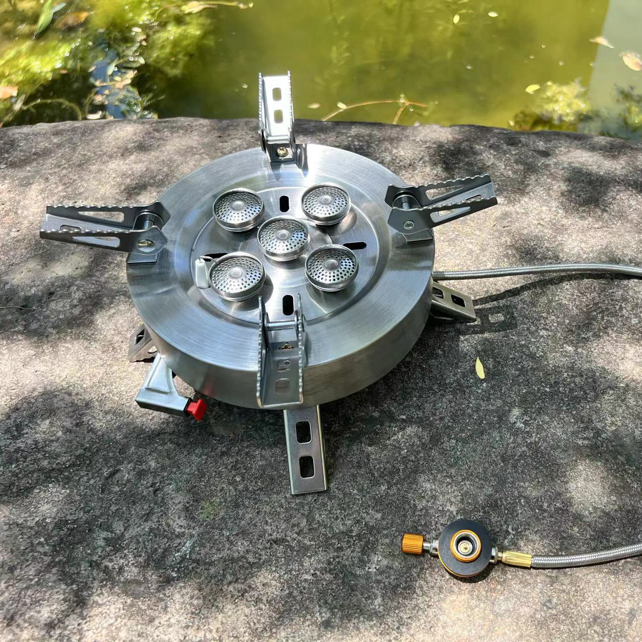새로운 야외 캠핑 5 성급 스토브 5 코어 난로 5 코어 맹렬한 난로 방풍 휴대용 스플릿 가스 스토브 전기 점화