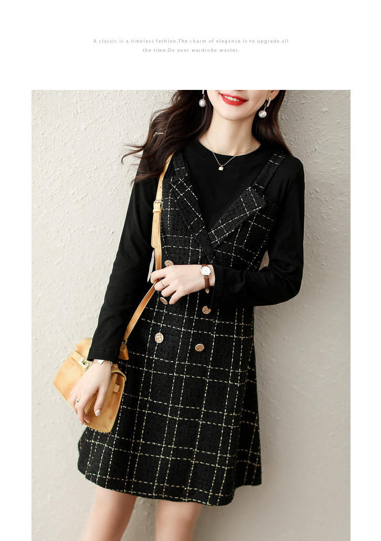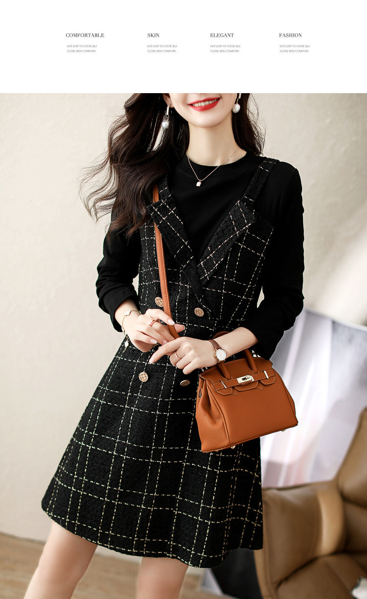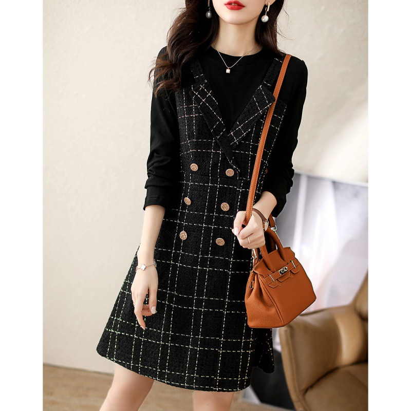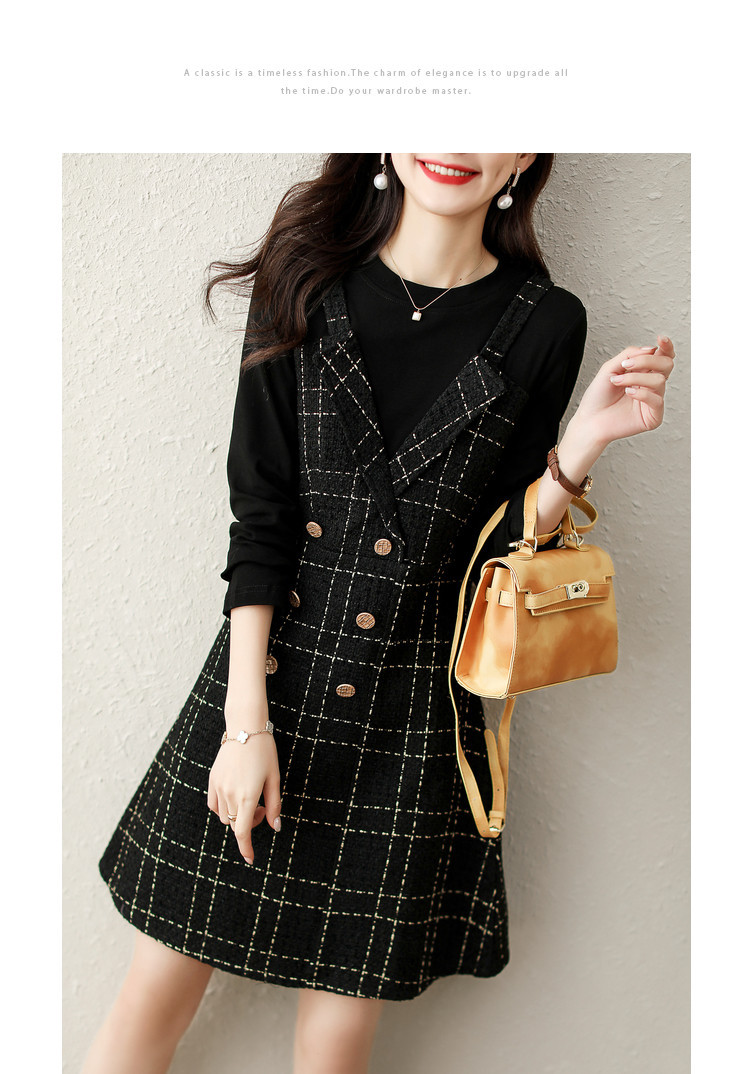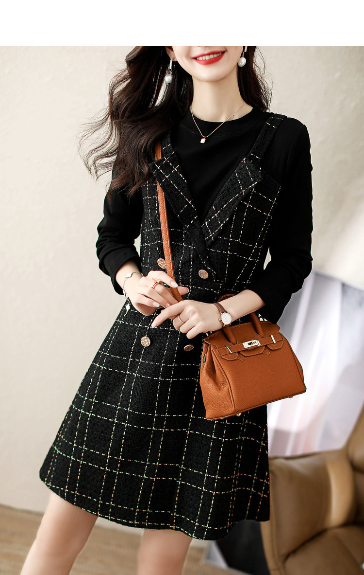 봄 가을과 겨울 새로운 한국 스타일 패션 사교계 샤오샹 스타일 나이 감소 가짜 투피스 서양식 우아한 빛 성숙한 격자 무늬 원피스스토어 가기