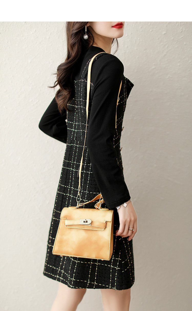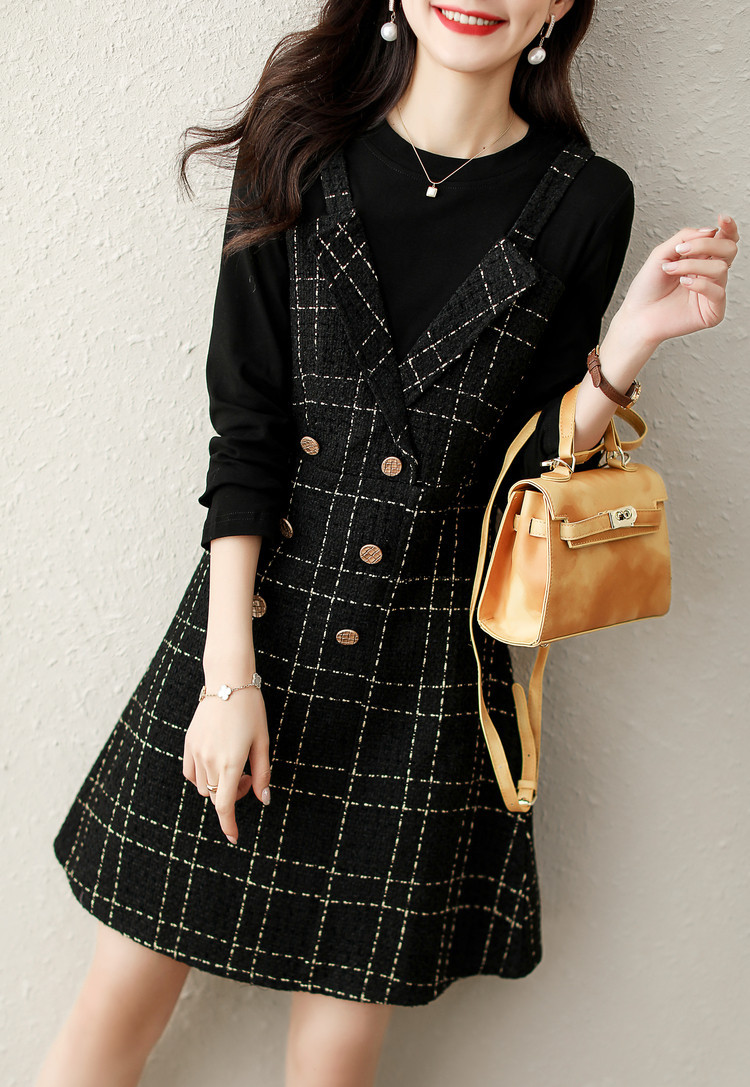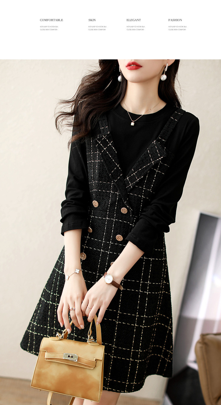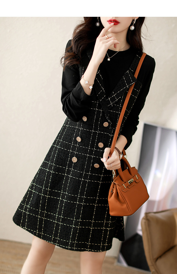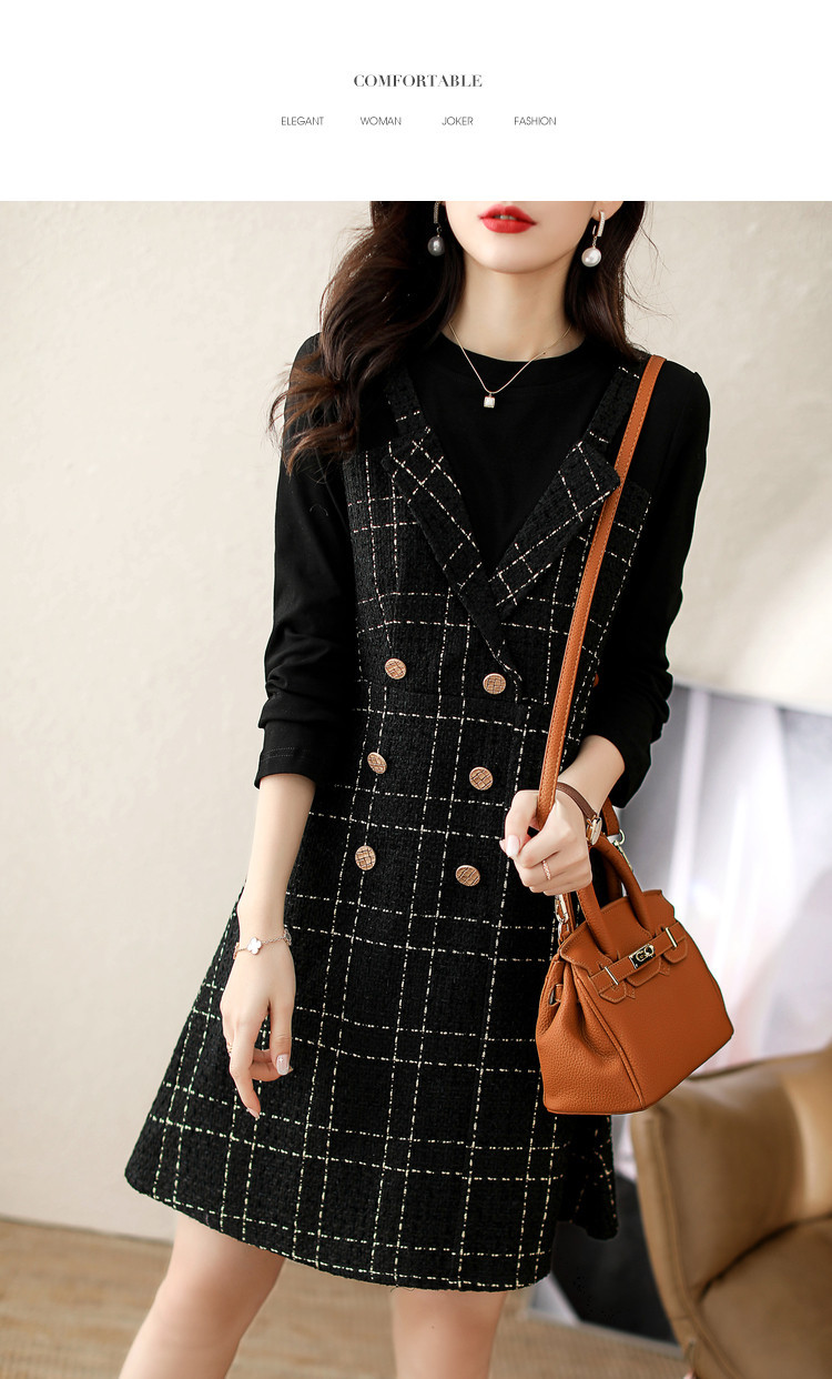봄 가을과 겨울 새로운 한국 스타일 패션 사교계 샤오샹 스타일 나이 감소 가짜 투피스 서양식 우아한 빛 성숙한 격자 무늬 원피스스토어 가기