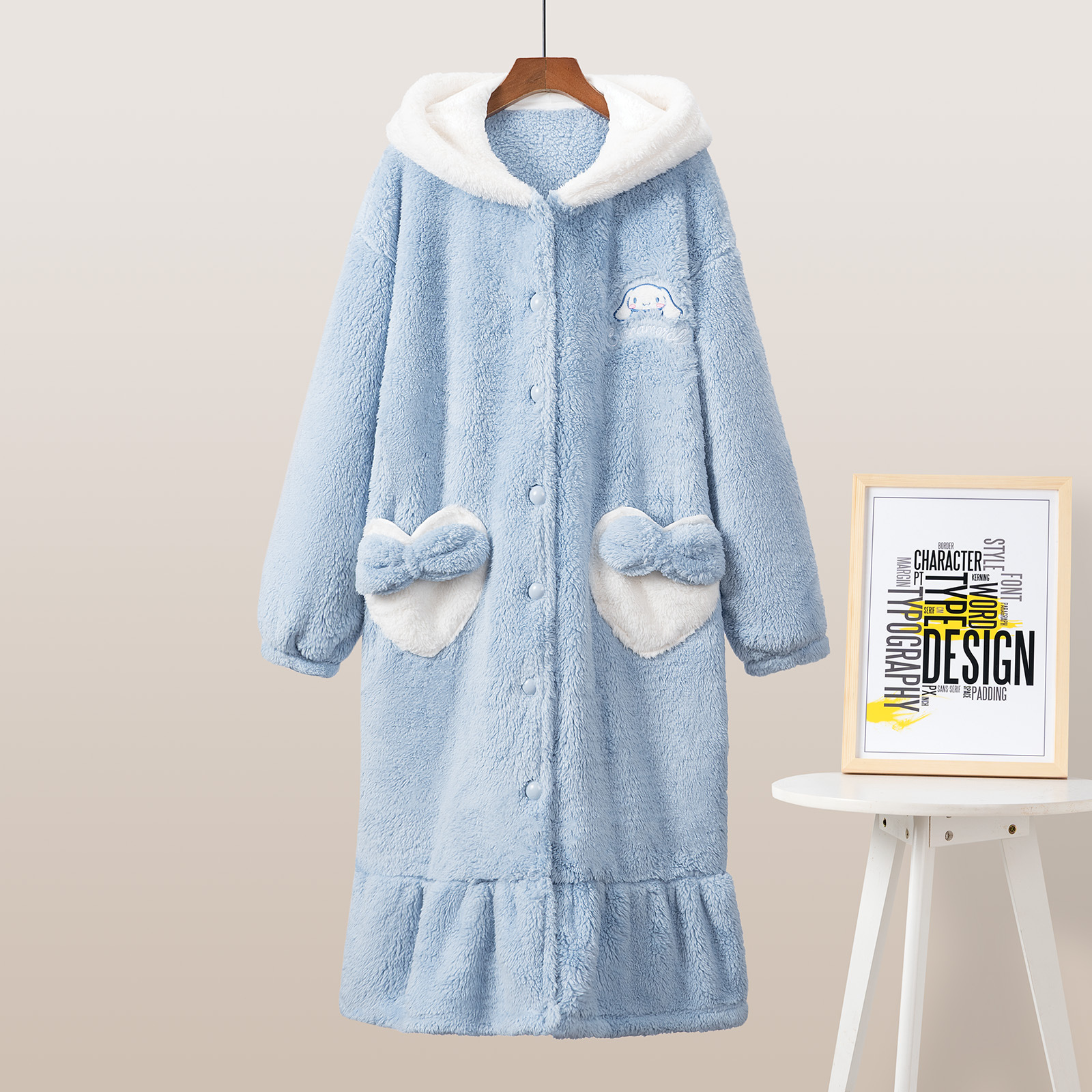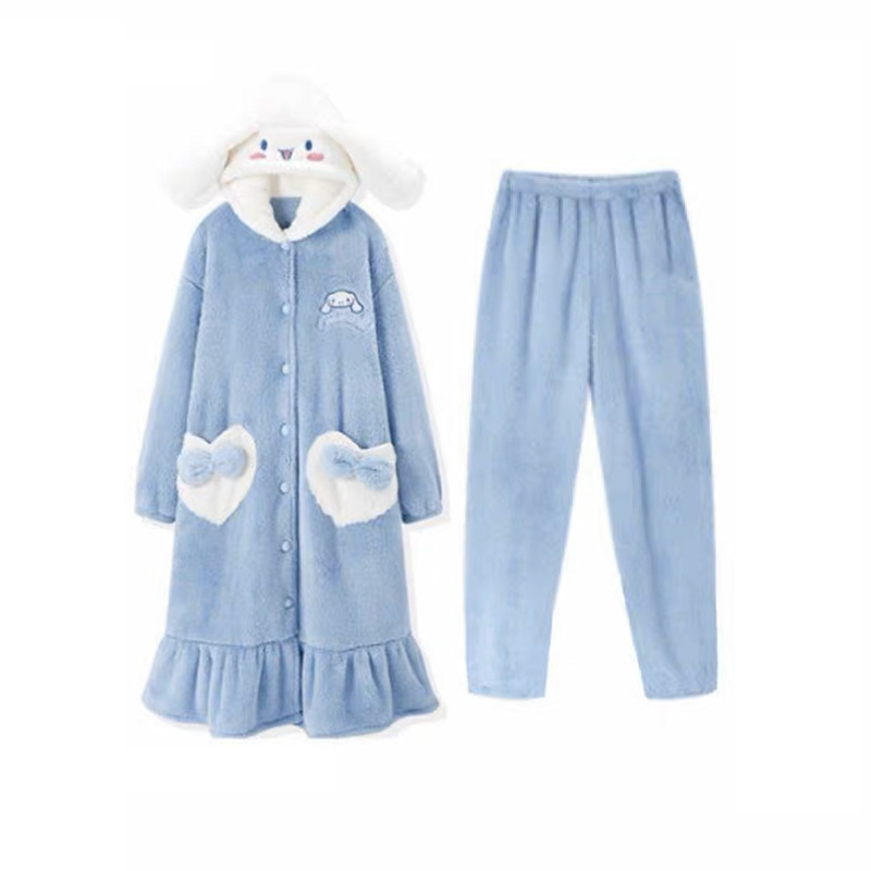 2023년 시나몬롤 잠옷 가을 겨울용 편안한 면 벨벳 두꺼운 안감 외출 가능 여성 홈웨어 세트 만화 원피스스토어 가기