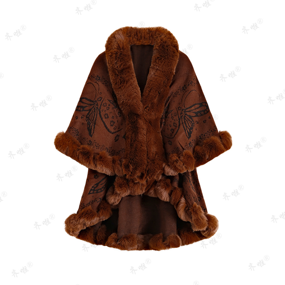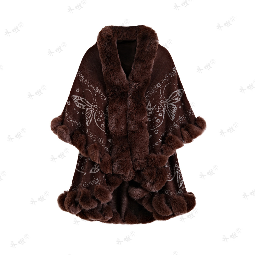 대외 무역 수출 하이 엔드 레트로 더블 레이어 모조 rex 토끼 케이프 케이프 레이디 니트 케이프 웨스턴 스타일 두꺼운 카디건 여성