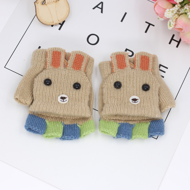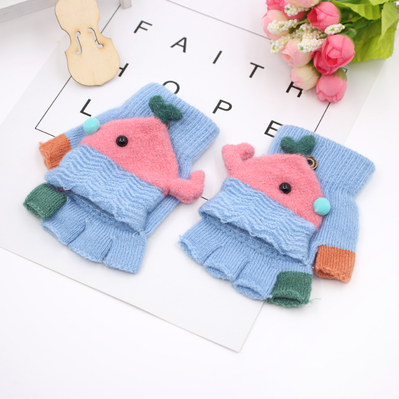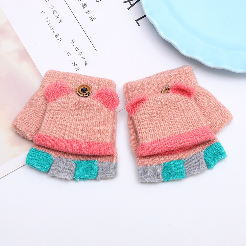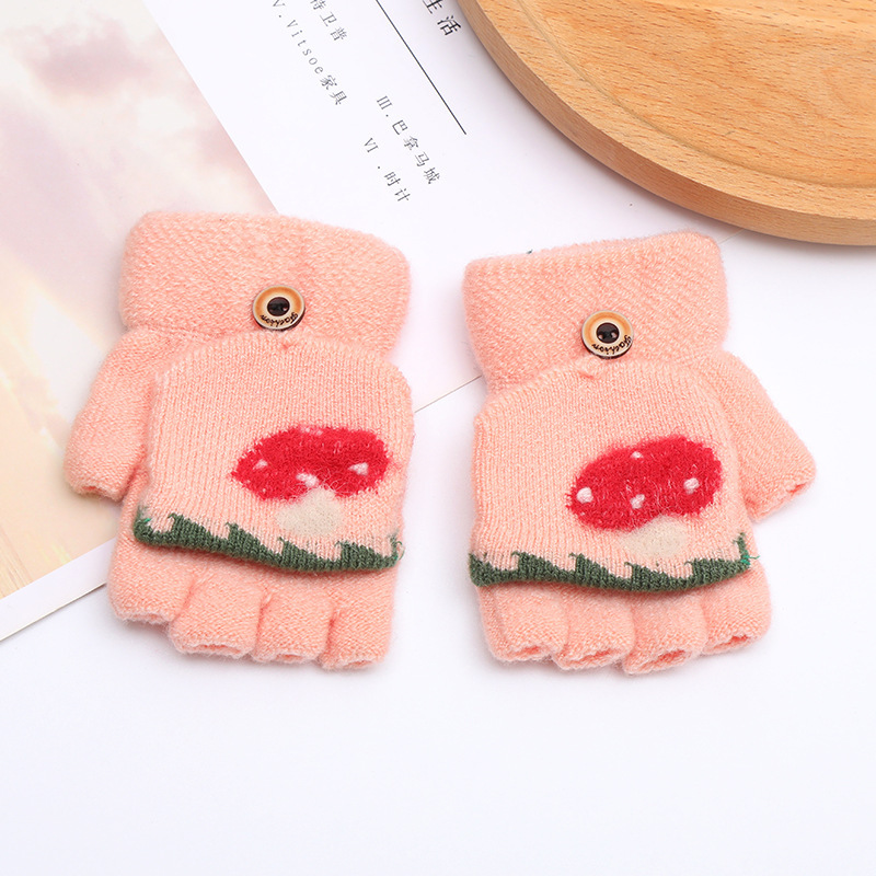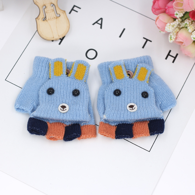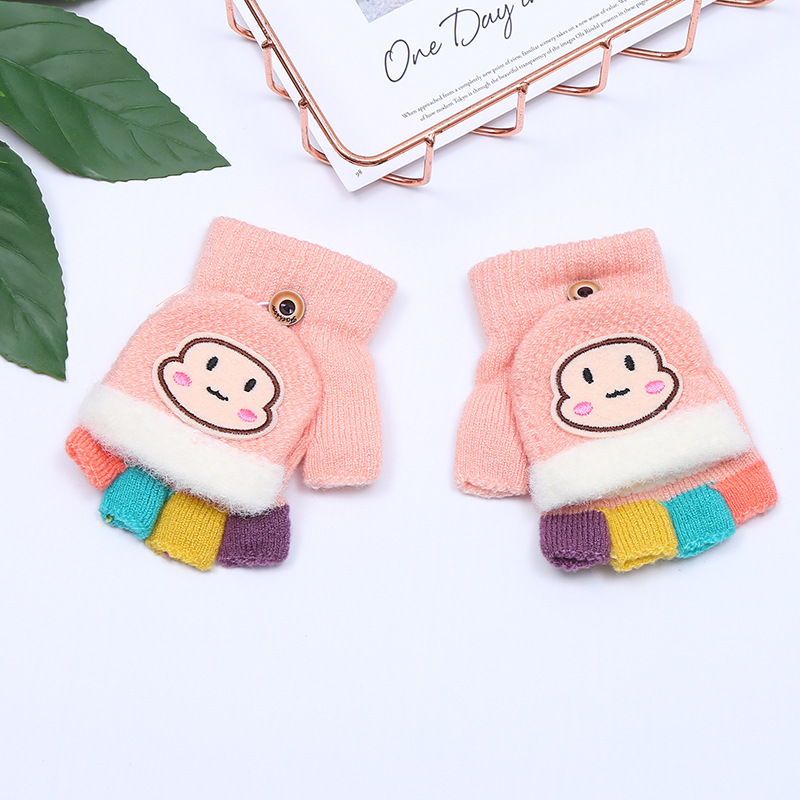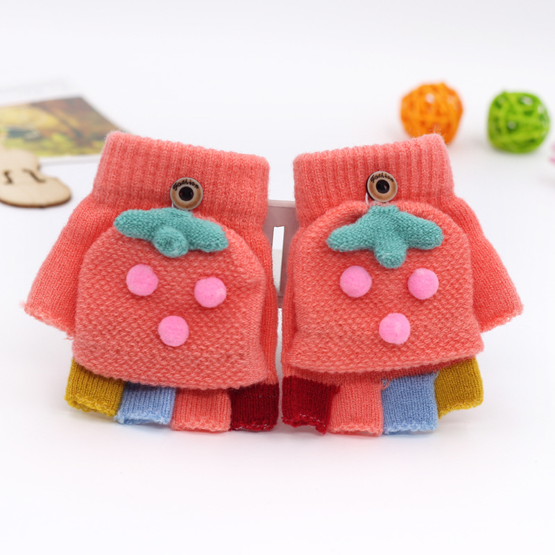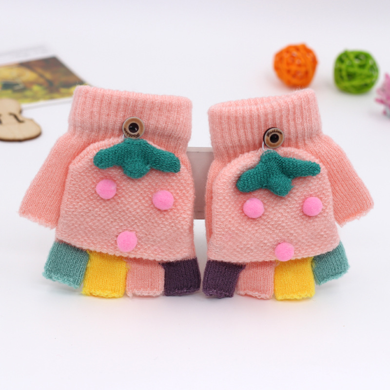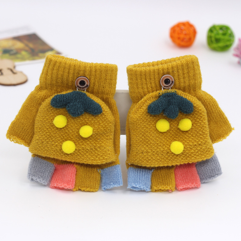 가을과 겨울 0-3 세 아기 장갑 뒤집기 아기 유아 어린이 절반 손가락 니트 따뜻한 귀여운